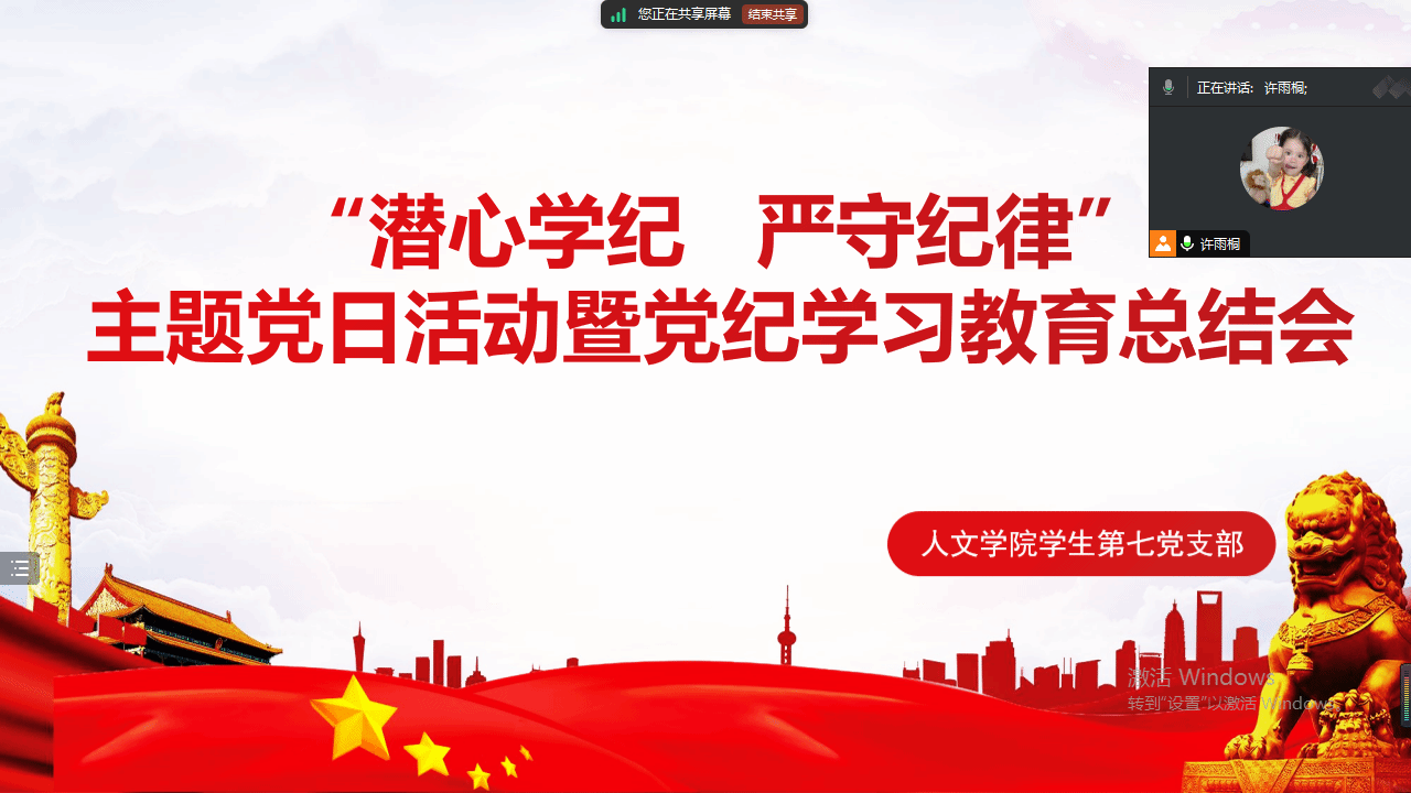 为深化“循迹溯源学思想促践行”行动,深入学习习近平总书记关于党纪学习教育的重要讲话和重要指示精神,推进党纪学习教育走深走实,取得实实在在的成效,2024年9月11日晚,球探体育 学生第七党支部在线上开展了以“潜心学纪 严守纪律”为主题的党日活动。会议由支部宣传委员许雨桐主持。
