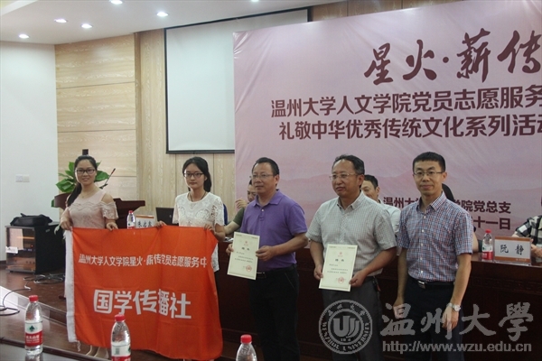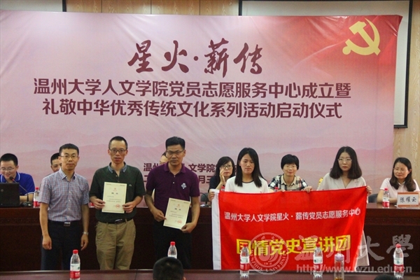党总支在北校人文楼203学术报告厅顺利召开“星火·薪传”党员志愿服务中心成立暨“礼敬中华”优秀传统文化系列活动启动仪式大会,温州大学党委副书记牟德刚、球探体育