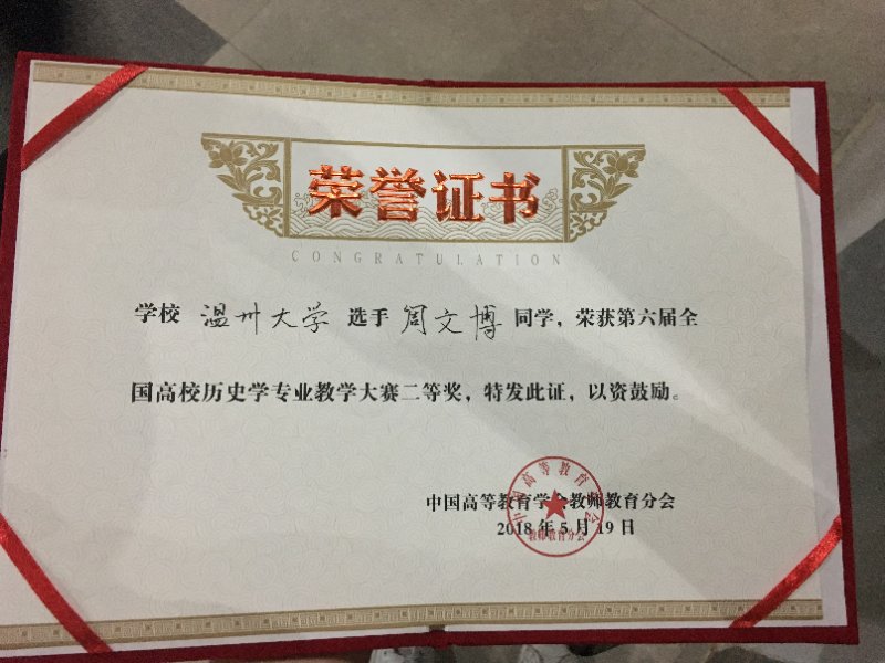 球探体育 高度重视本次赛事,由刘建国、郑春生、赵庆东、蒋金崇和尤育号等教师组成指导团队。经过激烈的角逐,15历本周文博同学荣获大赛说课组二等奖,带队教师亦获优秀指导教师称号。本次比赛是对球探体育 历史专业学生教学技能的一次检阅,对球探体育 历史专业人才培养质量的提高,亦有很大的促进作用。