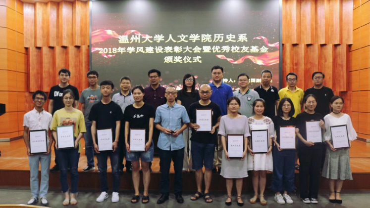 2018年6月19日15:30,球探体育 历史系2018年学风建设表彰大会暨优秀校友基金颁奖仪式在岩松堂雁山厅隆重举行,球探体育 院长孙良好,球探体育 党委书记吴静,副院长刘建国、郑春生,党委副书记朱启鑫等老师和历史系全体师生出席了本次会议。