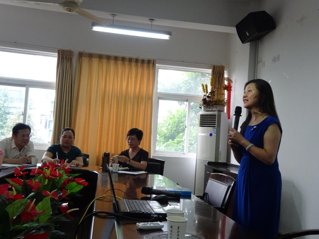 2018年7月3日周二下午,球探体育 外语系隆重邀请到美国西雅图大学终身教授、前任TESOL国际协会主席孙以琳教授来球探体育 讲座。本次讲座的主题是“Glocalisation——Think global, Act local”。讲座由朱晓申副院长主持,参会的嘉宾有球探体育 毛继光副院长及各位系主任、外语系的全体教师和在读研究生。