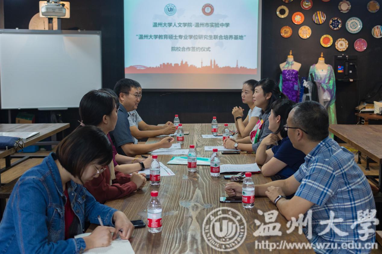 2018年9月26日,温州大学教育硕士专业学位研究生联合培养基地院校合作签约仪式在温州市实验中学举行。参加本次签约仪式的有球探体育 院长孙良好,副院长席留生,英语学科教学硕士点负责人李宋昊,17级英语学科教学研究生刘琴,温州市实验中学副校长黄慧,校教师发展处主任何倩,校办副主任朱彬茹,校英语教研员陈俊杰。温州实验中学教师发展处主任何倩主持会议。