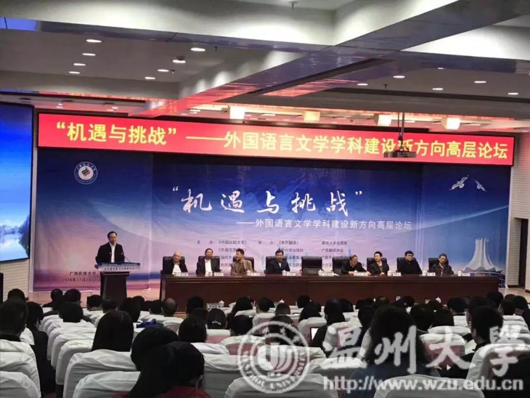 “机遇与挑战”——外国语言文学学科建设新方向高层论坛于2018年11月24—25日在广西民族大学顺利召开。球探体育 外语系英语(师范)专业负责人李新德教授和外语系主任杨开泛老师参加论坛,并分别在论坛上作了题为“叶祥添‘金山系列小说’中的创伤书写”和“区域研究专业的培养理念及其对于英语专业的启发”的发言。