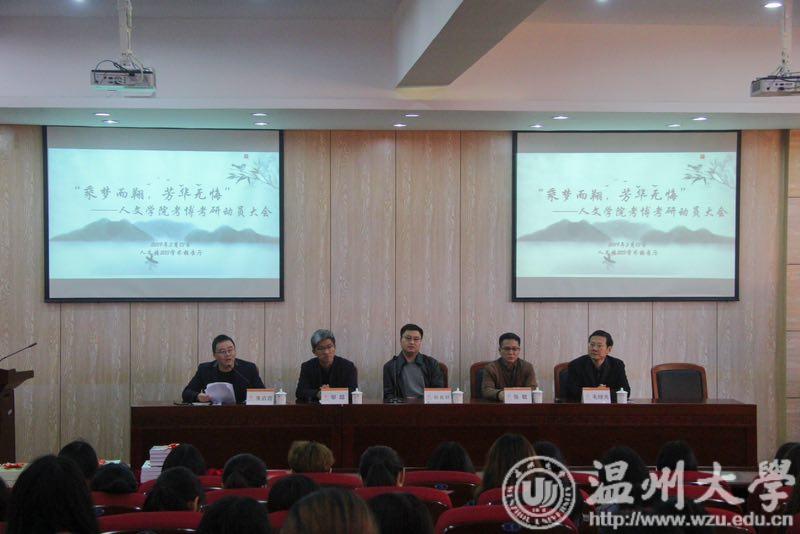 2019年3月13日下午,球探体育 于人文楼203学术报告厅举办以“乘梦而翔,芳华无悔”为主题的考博考研动员大会。球探体育 院长孙良好、学生处处长张敏、研究生院副院长邹超、球探体育 副院长毛继光、球探体育 党委副书记朱启鑫共同出席本次会议。球探体育 有考博考研意向的同学们都积极参加本次活动,全场座无虚席。