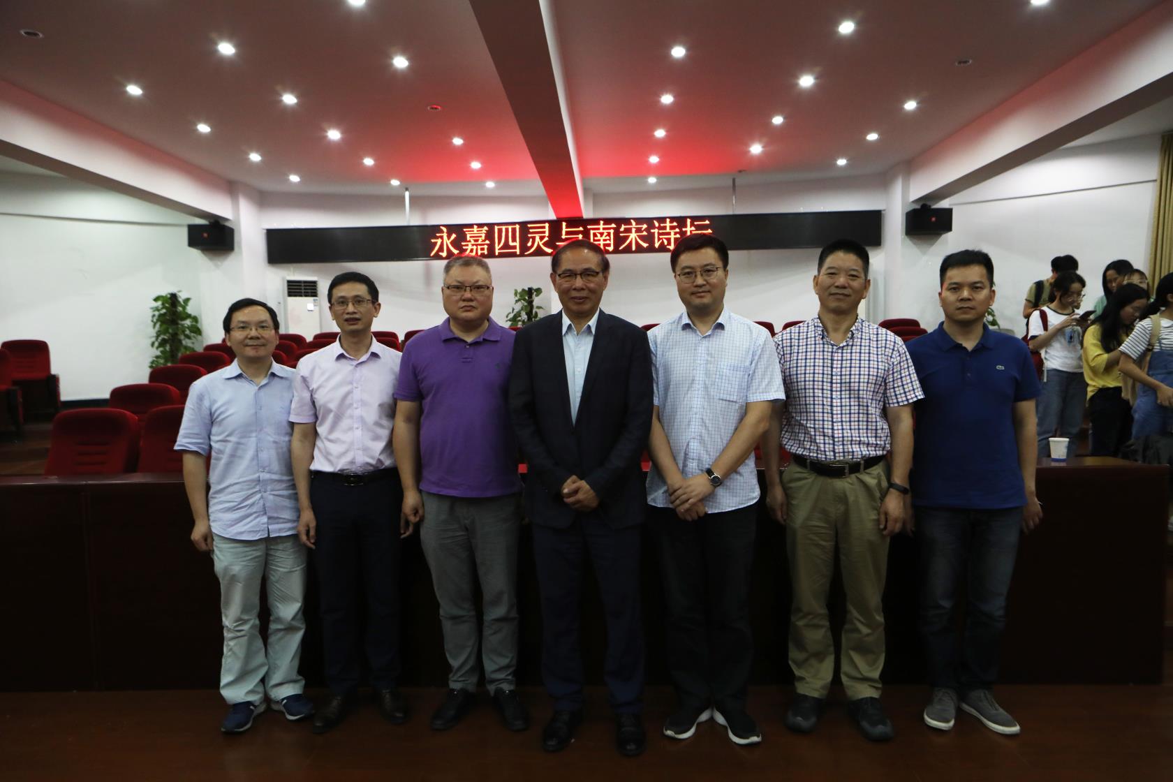 6月10日晚7点,在球探体育 203会议室,百余名师生分享了罗山讲堂“永嘉四灵与南宋诗坛”的主题讲座。本期嘉宾是来自香港浸会大学的张宏生教授,球探体育 院长孙良好教授出席并主持讲座。