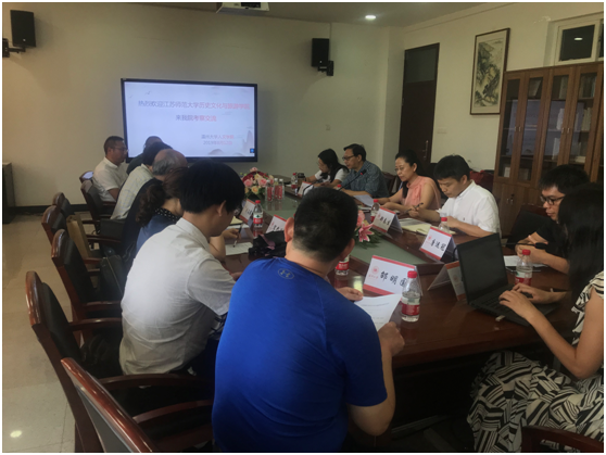 2019年8月12日下午,江苏师范大学历史文化与旅游学院院长张文德教授,国务院侨办侨务理论研究江苏基地常务副主任、教育部国别和区域研究中心(备案)澳大利亚研究中心主任、江苏师范大学华侨华人研究中心主任张秋生教授等一行8人来我校调研交流。在球探体育