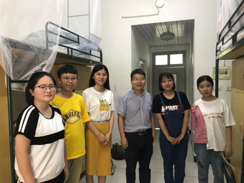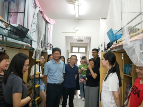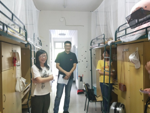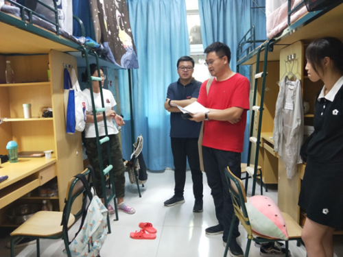 “空山新雨后,天气晚来秋”,初秋午后的一场阵雨冲洗掉了夏日还未带走的炎炎暑气。2019年9月4日,温州大学党委副书记庄兴忠、球探体育 院长孙良好、院党委书记吴静、副院长郑春生、院党委副书记魏一、院长助理张真、学工办主任刘纪峰、辅导员胡震鹏、李丹萍以及新生班主任、班助和团委学生会成员,共同走访了2019级新生寝室,向新生们致以热烈的欢迎与亲切的问候。
