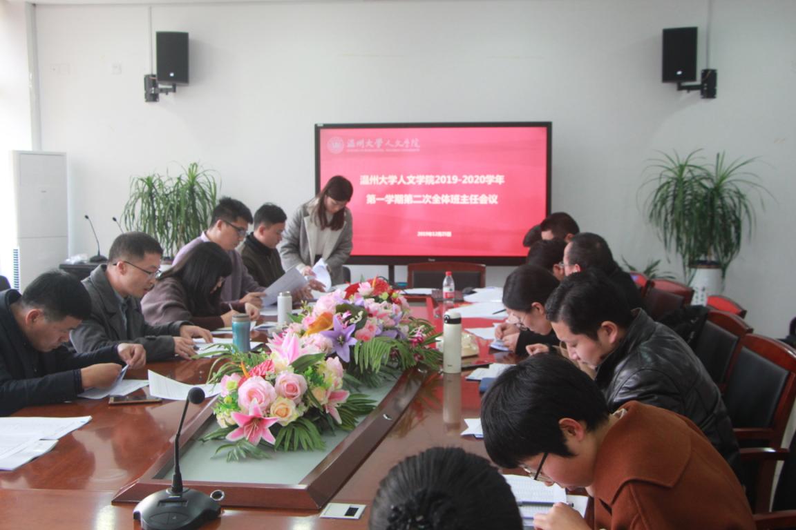 12月25日15:30,球探体育 2019-2020学年第一学期第二次全体班主任会议于人文楼213会议室举行。院党委书记吴静、党委副书记魏一、全体班主任、全体辅导员出席本次会议。