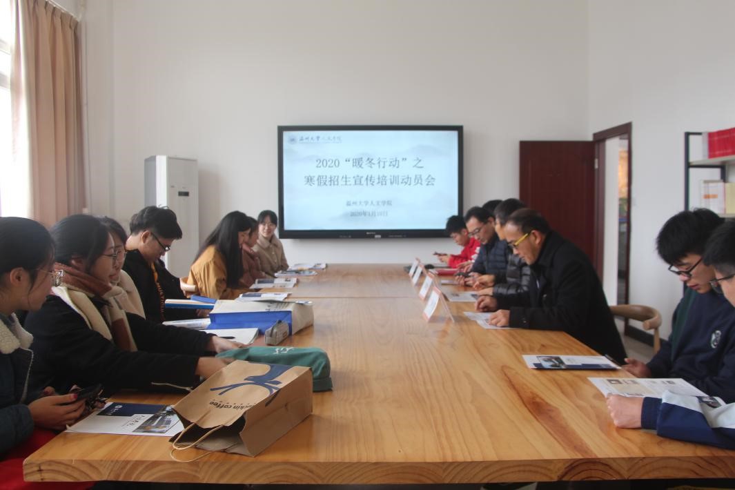 用青春温暖人心,用言语照亮归途。归时已是寒冬,来时一片春红。2020年1月10日上午,球探体育 2020“暖冬行动”之寒假招生宣传培训动员会在人文楼214举行,副院长郑春生教授、汉语言文学系主任洪之渊老师、广告学系主任黄良奇老师、学工办辅导员李丹萍老师出席本次会议。