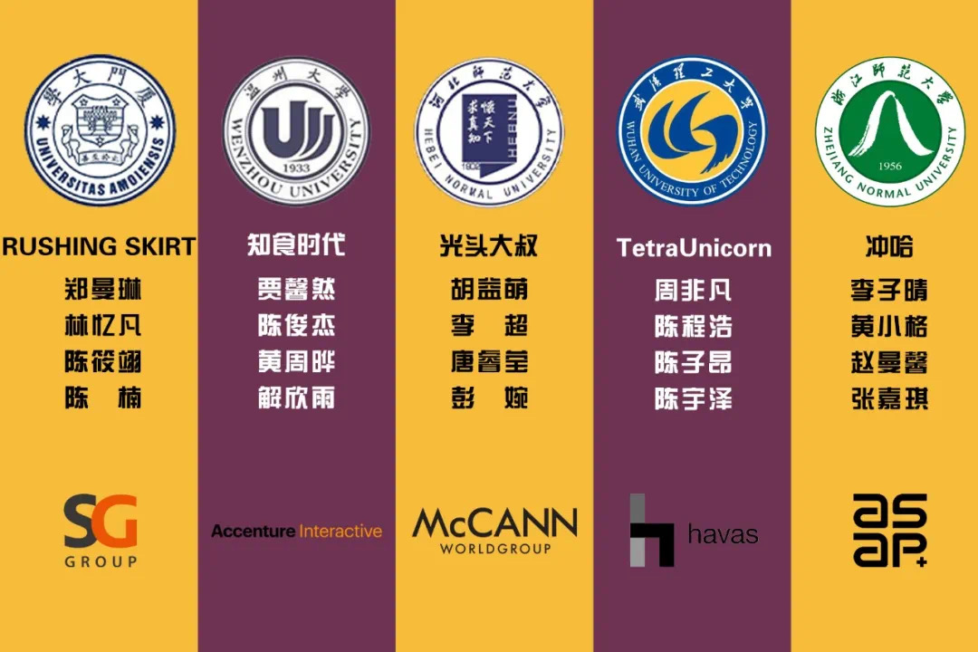 7月23日,2020上海国际广告节新锐挑战营在上海落下帷幕。球探体育 2017级广告学专业《知食时代》团队(由贾馨然、陈俊杰、黄周晔、解欣雨4位同学组成)经过层层选拔和激烈角逐最终获得亚军,这是球探体育 广告学专业继2019首届上海国际广告节新锐营(球探体育 两支学生队伍分别斩获亚、季军)后,在广告业界增添的又一浓墨重彩。