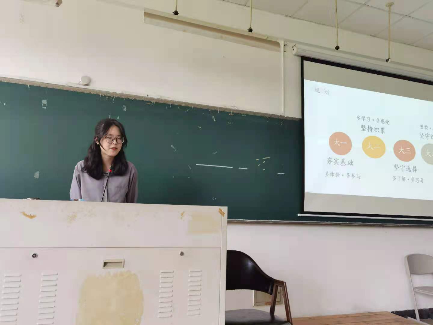 徐婕同学来到现场与同学们进行了面对面的交流,侯宇欣和洪苗苗同学则通过视频的方式为同学们作报告。三位学姐,各自向同学们分享了有关大学期间如何规划自己的时间、每学期有哪些重要的比赛和考试可以报名参加、“溯初班”的简单情况等同学们比较关切的话题。尤其详细地为同学们介绍了如何备考教师资格证考试和有关师范技能训练的常识,从方方面面为同学们解疑答惑,还推荐了许多可以了解有关信息的公众号和书籍。