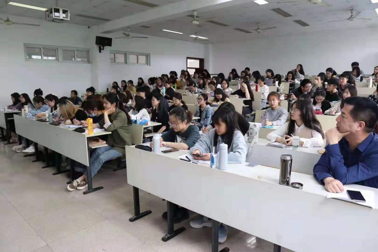 (三)4月28日周三上午10:00——11:30,在球探体育 402教室,由温州市名师陈珊景老师,为同学们做了《聊聊从专业走向职业那些事儿》的讲座。陈珊景老师是温州市南浦实验中学的语文老师,还担任该中学的办公室主任。陈老师本次的讲座分为“职业的颜值”、“大学的修炼”、“牵手的准备”三个部分,在生动活泼的气氛中为同学们讲述并进行适时交流。