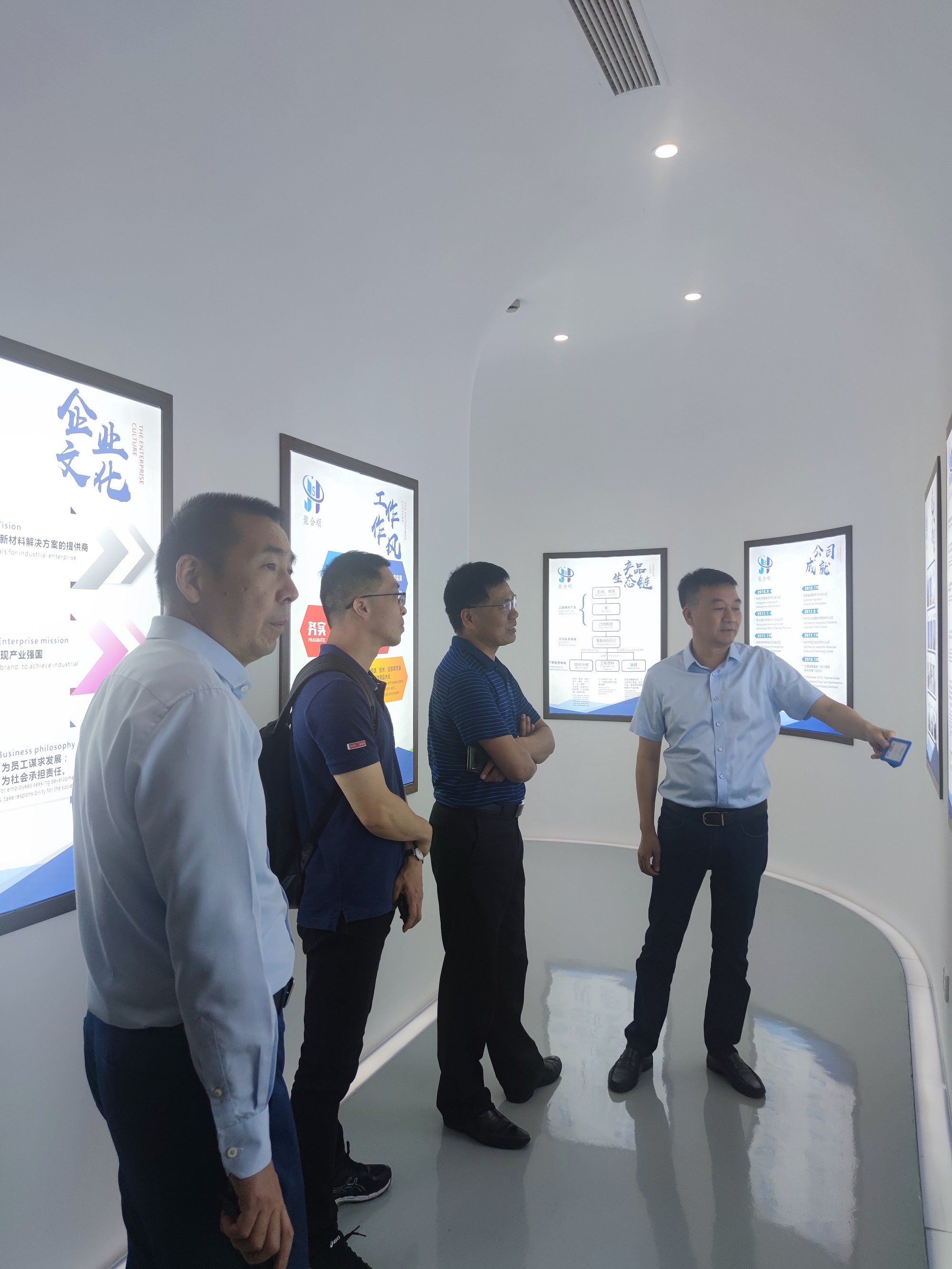 为更好地凝聚校友、服务校友,增进校友与母校的情感,搭建校友与母校沟通的桥梁,实现学校和校友事业共赢发展,5月16日上午,球探体育 党委副书记魏一、球探体育 教授刘建国以及学工办辅导员申业磊一行赴校友傅昌宝创办的杭州聚合顺新材料股份有限公司走访。