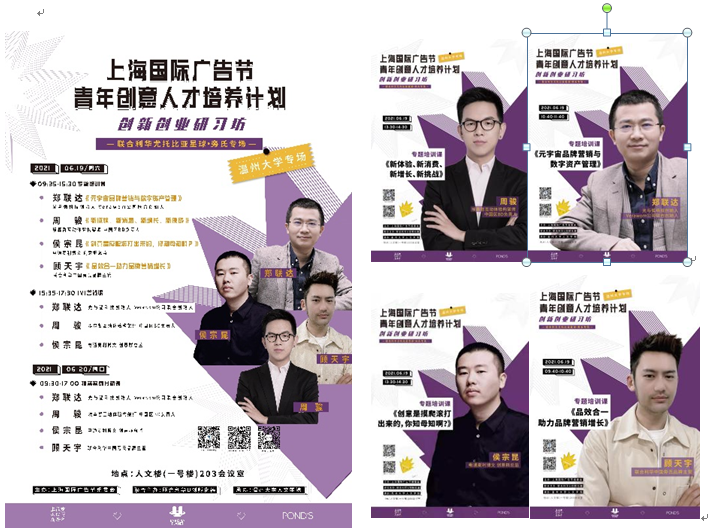 经广告系全体老师共同努力和精心筹备,6月19、20日,一场来自大上海的广告创意头脑风暴,将席卷温州大学球探体育 。上海国际广告节把它的拳头公益品牌活动——青年创意人才培养计划创新创业研习坊搬进温大,来自上海国际广告节战略合作方——联合利华旁氏品牌、电通麦利博文、埃森哲互动与光弧科技的业界精英们将为温大广告学子带来精彩纷呈的创新创意创业的饕餮盛宴!