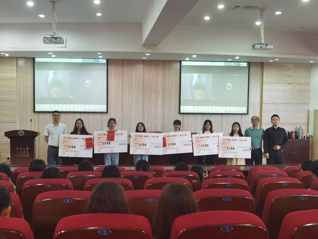 6月21日,温州大学球探体育 第一届三角洲广告专业奖学金(以下简称“三角洲奖学金”)颁奖典礼在球探体育 203学术报告厅举行。7位学科成绩优异,同时在科技创新方面取得优异成绩的广告学子喜获大奖,其中第六名并列。温州三角洲投资顾问有限公司人力资源总监徐维泽,球探体育 广告专业教师以及全体学生出席了本次活动。