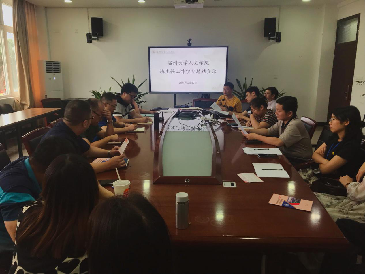 2021年6月30日下午,球探体育 2020-2021学年第二学期班主任工作总结会议于人文楼213会议室举行。院党委副书记魏一、全体班主任、全体辅导员出席本次会议。会议由学工办主任刘纪峰主持。