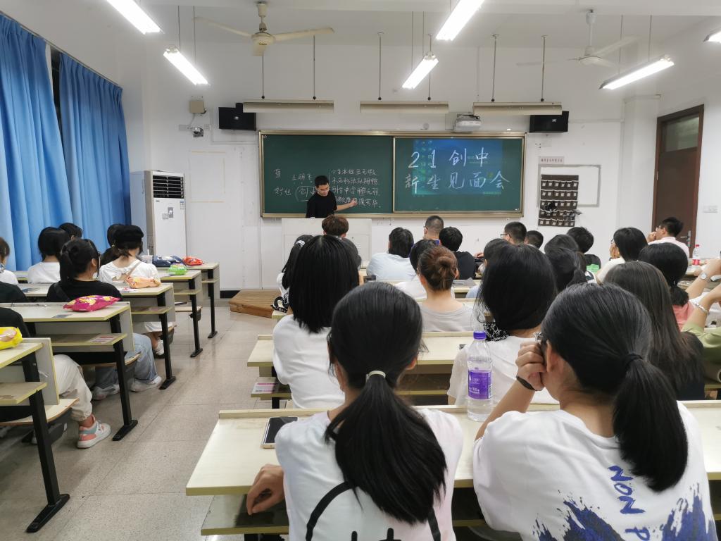 21创中班主任王朋飞老师先向同学们进行了自我介绍,与同学们传达了学校对同学们在人身安全、财产安全等各方面问题上的重视,后与同学们分享了自己在大学和平时生活中总结出来的经验,并向同学们传递了寄语“读圣贤书,所学何事。而今而后,庶几无愧”。其后,班助利用PPT向同学们解答了在此前收集的十大问题。在轻松愉快的氛围中,大家轮流进行了自我介绍,迅速找到同好、老乡甚至是初高中校友。最后,25位同学依次上台进行班委竞选发言,全班投票顺利选出临时班委,班主任并对班委们进行嘱托。