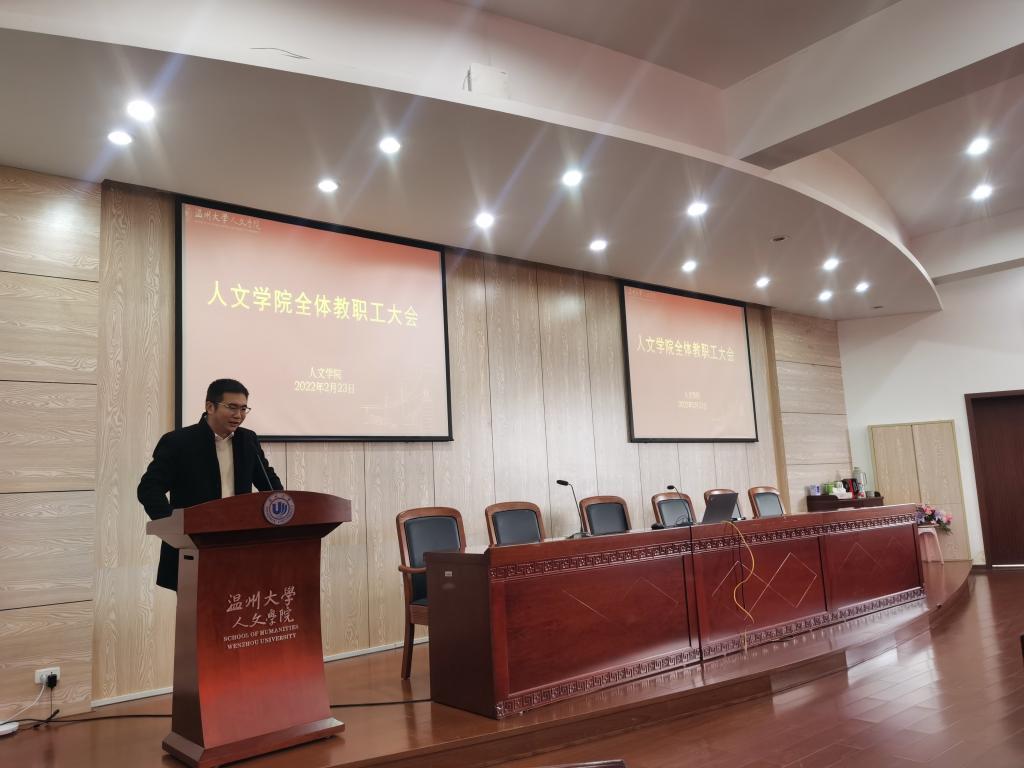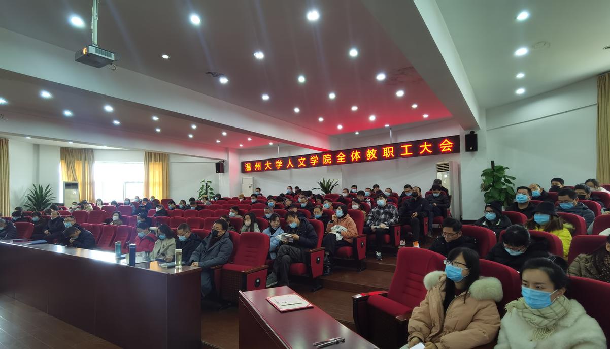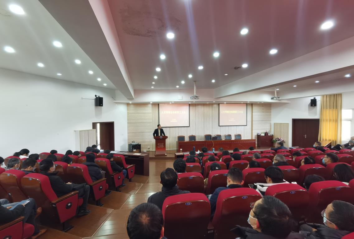 2月23日下午,球探体育 新学期第一次教职工大会在人文楼203报告厅召开,学院领导班子和全体教职工参加会议,会议由学院党委书记江秀景主持。
