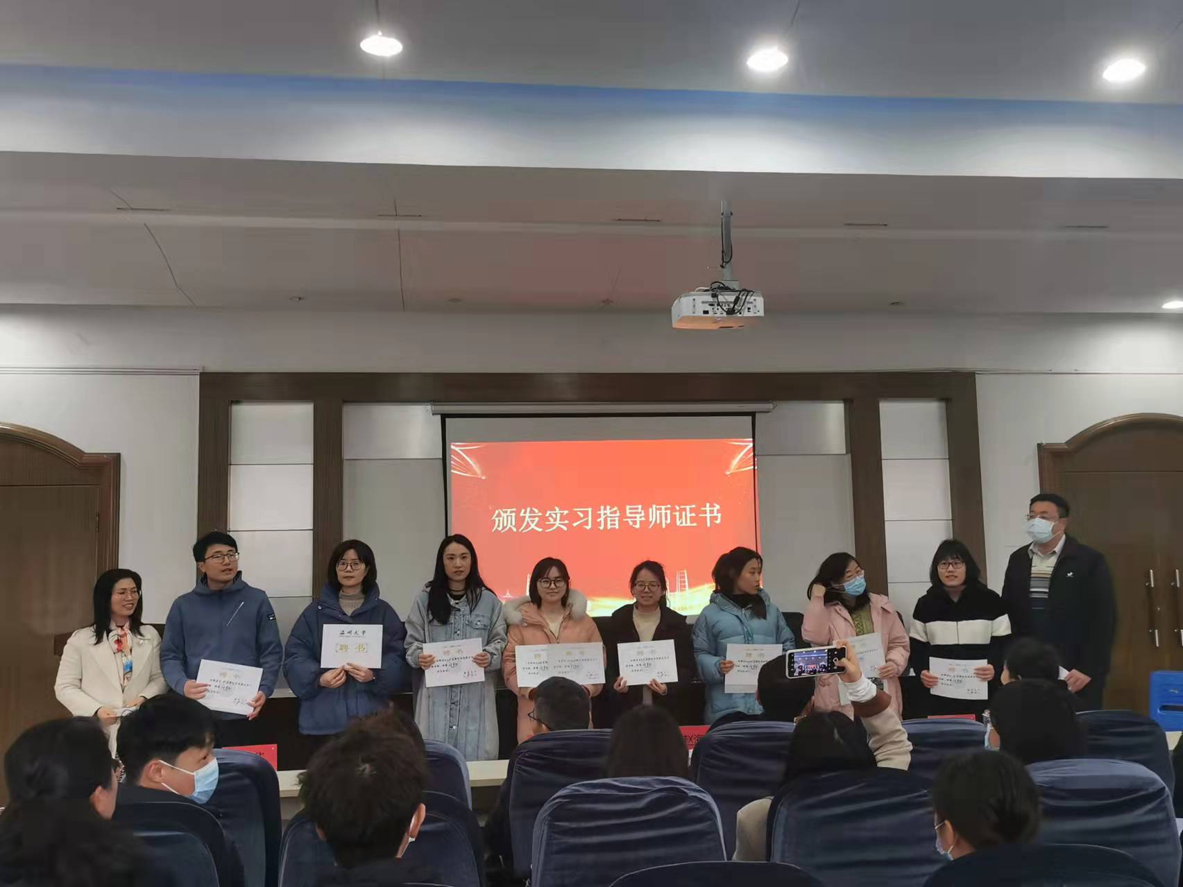 北大新世纪附属学校的何民校长和老师们对温大实习生的到来表示热烈欢迎。何校长分享了自己与温州大学之间的温馨故事,并强调了实习在整个教育生涯中的重要地位并对实习教师们做出温情寄语。随后,德育校长张校给实习生分享了诸多教学经验。应俏老师作为实习专业指导老师发言,分享了实习老师要学会角色转换的经验,希望实习生时时以师德师风的高标准要求自己,认真、主动地完成各项实习任务。温大实习生代表陈温增同学展示了实习生们“纸上得来终觉浅,绝知此事要躬行”的决心和严格遵守各项纪律的承诺。学院领导代表郑春生副院长,结合自身经历说明了实习的重要性,并希望各位实习老师做到投入、上进,并表达了对所有实习教师的期待和祝愿。最后,张慧老师宣读实习指导老师名单,指导老师与实习生进行了师徒结队。