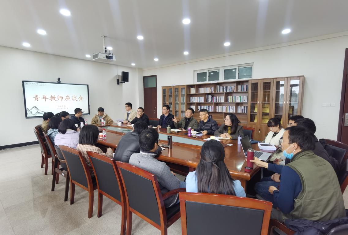 为了解近两年新入职教师工作生活状况,帮助新入职教师更快更好地融入学院,增强学院凝聚力。2022年3月2日下午和3月17日上午,球探体育 在人文楼213会议室分批召开了2020年入职与2021年20多名新入职教师座谈会。院长孙良好、书记江秀景、班子其他成员,工会主席蒋述,各科室负责人参加了座谈。会议由郑春生副院长主持。