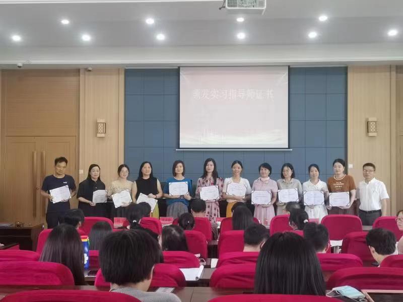 的郑春生副院长和洪之渊老师还代表学院给惠民路分校相关班主任指导师和语文学科指导师颁发了聘书并合影留念。