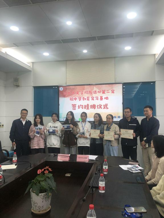 2022年11月14日,温州大学球探体育 与温州市第二实验中学实习基地签署仪式暨汉语言文学(师范)教育见习见面会在温州市第二实验中学举行。参加本次见面会的有温州市第二实验中学潘智敏校长、郭建昆副校长、陈珊景副校长、教务处主任冯超伟和各语文学科、班主任导师,温州大学球探体育 孙良好院长、中文系主任鲍良兵和温州大学20和21级人文学汉语言文学(师范)专业15名见习生。会议由冯超伟主任主持。