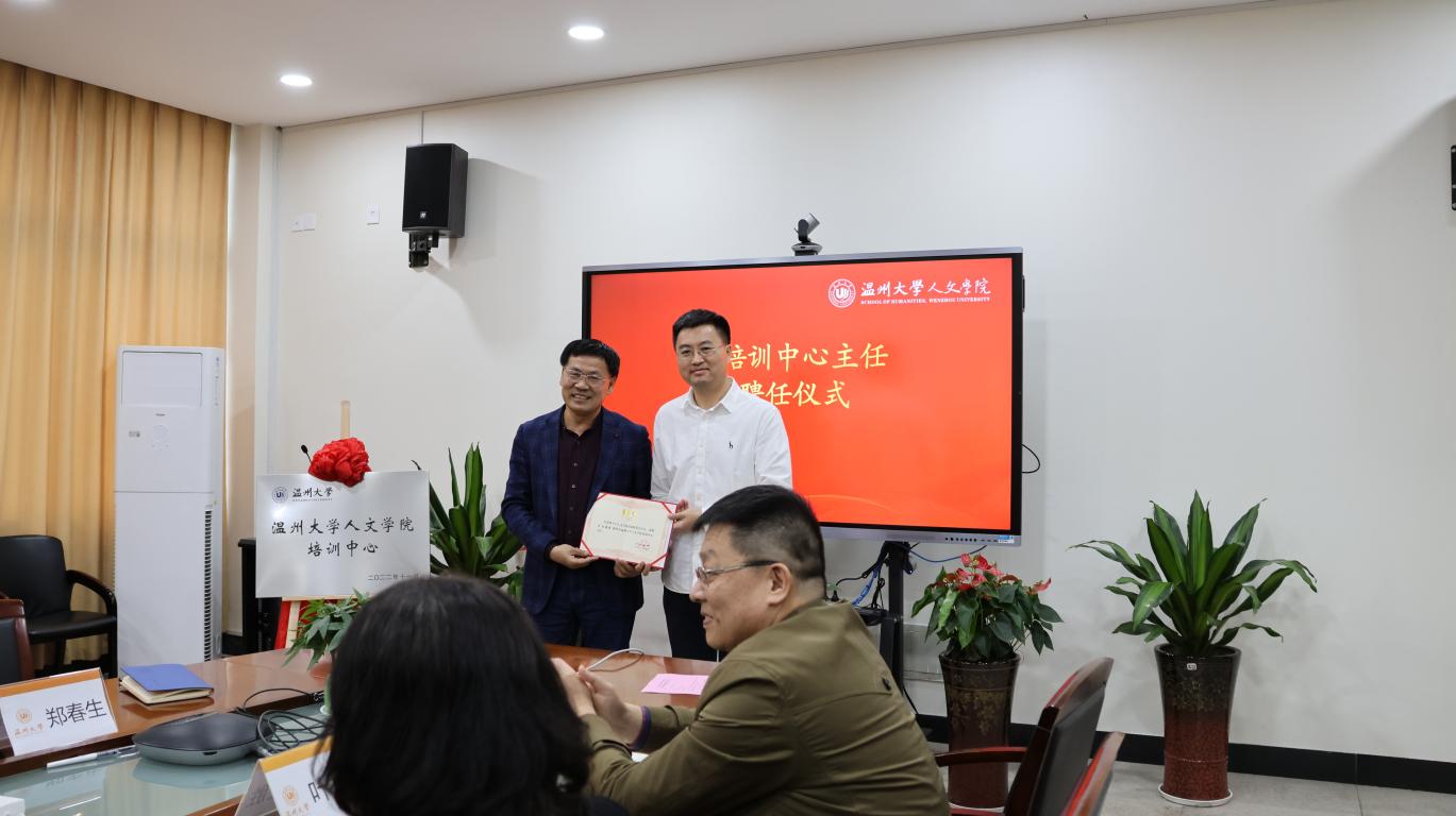 会议伊始,郑春生副院长宣读了球探体育 培训中心成立文件。随后,孙良好院长和熊琳处长一起为培训中心授牌,并为刘建国教授颁发了培训中心主任聘书。之后,中心主任刘建国教授、熊琳处长和江秀景书记分别讲话。刘建国主任表示,以后将充分利用球探体育 自身优秀师资和丰富校友资源,推出中小学教师及社会喜爱的培训课程。熊琳处长对温大非学历政策作了细致解读,并期待球探体育 打造精品培训项目、为地方社会发展作更大贡献。江秀景书记表示,学院将大力支持培训中心工作,同时希望培训中心以“规范化”“优质化“ “品牌化“,扩大球探体育 影响力,助推温州大学发展。