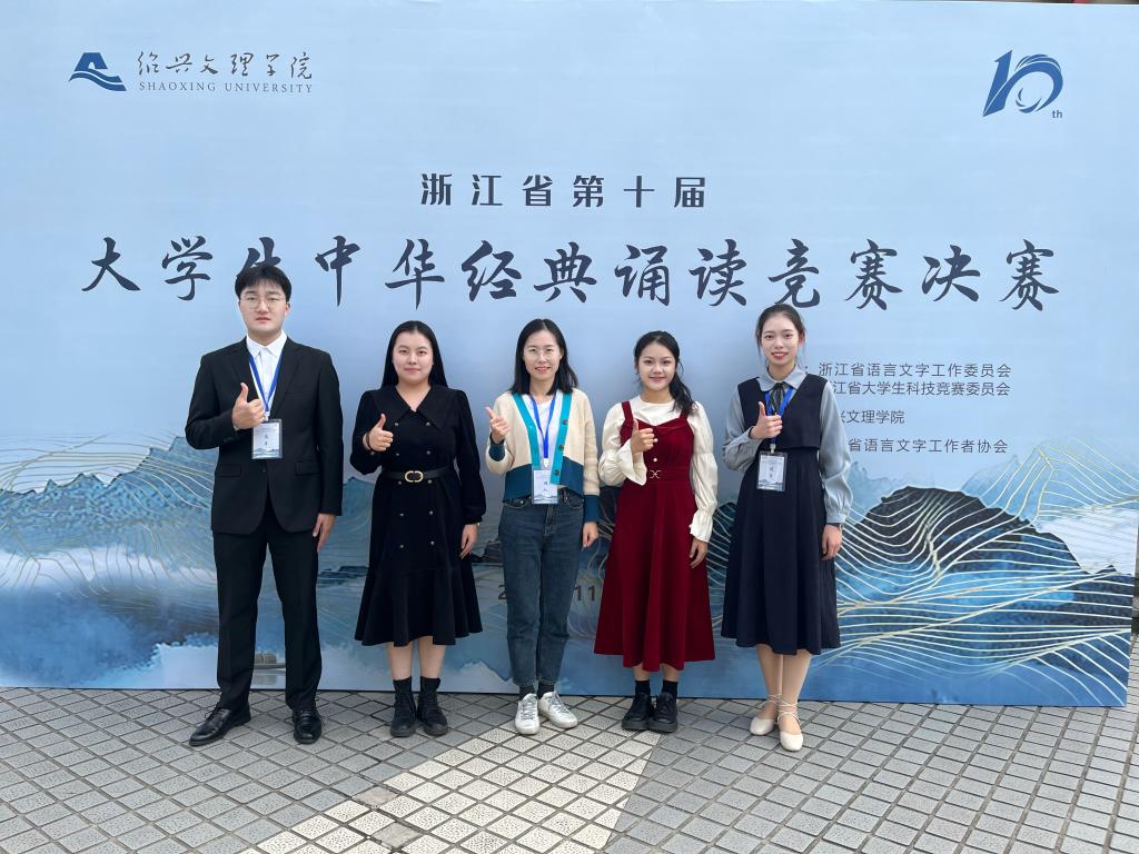 2022年11月5-6日,浙江省第十届大学生中华经典诵读竞赛决赛在绍兴文理学院成功举办。在球探体育 余琼老师带队指导下,球探体育 学子共获7个奖项,创球探体育 此项赛事参赛成绩历史新高。个人组获得5个奖项,其中,应佳桦荣获一等奖,为在温本科高校唯一获得一等奖的参赛选手;王皓天荣获二等奖,叶萌萌、张豪迈、吕建侨荣获三等奖。同时,球探体育 学子参加的两个综合组节目全部获奖。球探体育 余琼老师获“优秀指导教师”。在本届赛事上,球探体育 中文、历史、广告的学生都积极参赛,并斩获佳绩。