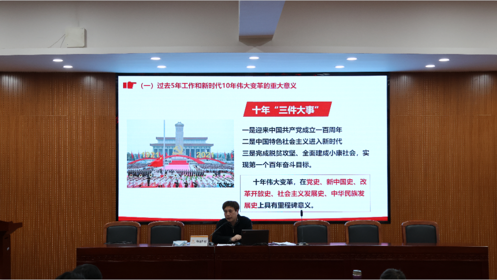 杨林书指出,党的二十大是在我党完成第一个百年奋斗目标,全面建成小康社会,向第二个百年奋斗目标,建设社会主义现代化强国进军的关键时刻召开的一次十分重要的大会。大会总结回顾了过去五年工作成就和新时代十年的伟大变革,阐述了开辟马克思主义中国化时代化新境界和中国式现代化的特点本质,对以中国式现代化推进中华民族伟大复兴进行战略谋划,为新征程指明了前进方向,确立了行动指南,是党团结带领全国各族人民夺取中国特色社会主义新胜利的政治宣言和行动纲领。