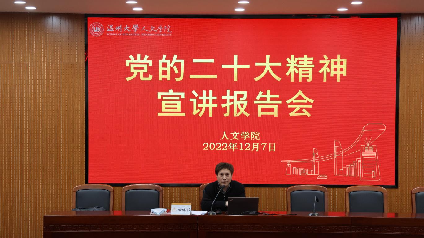 为深入学习贯彻党的二十大精神,12月7日下午,球探体育 召开党的二十大精神宣讲报告会。校党委委员、纪委书记杨林书为全院教职工和学生党员代表作党的二十大精神专题宣讲,院党委书记江秀景主持。