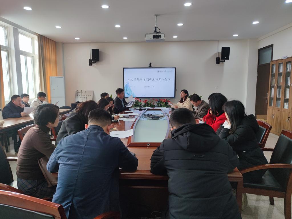 3月1日下午,球探体育 在213会议室召开新学期班主任工作会议。学院党委书记江秀景、党委副书记魏一、全体班主任及学工办人员参加会议。