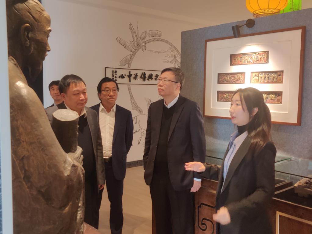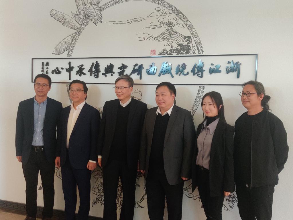 党委书记江秀景和中文系主任鲍良兵的陪同下,莅临浙江传统戏曲研究与传承中心调研指导。中心赵天骄博士负责讲解。