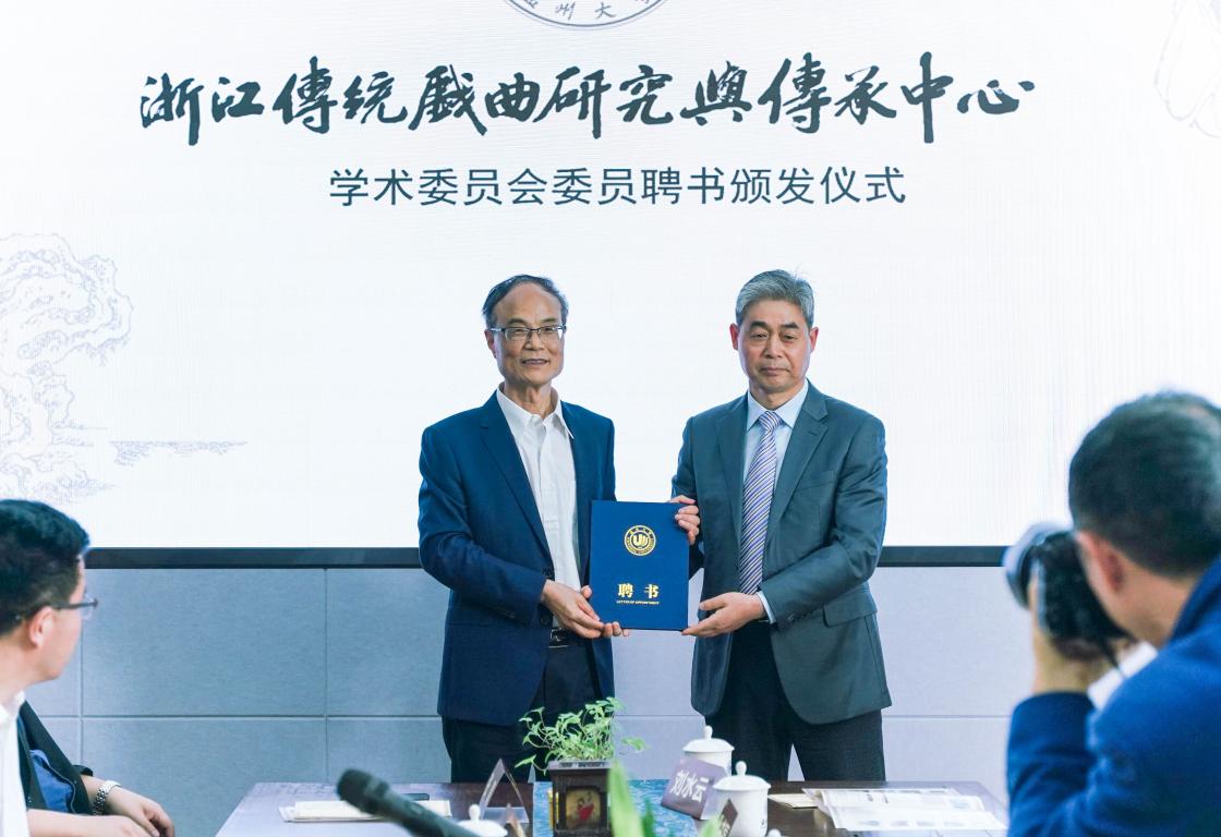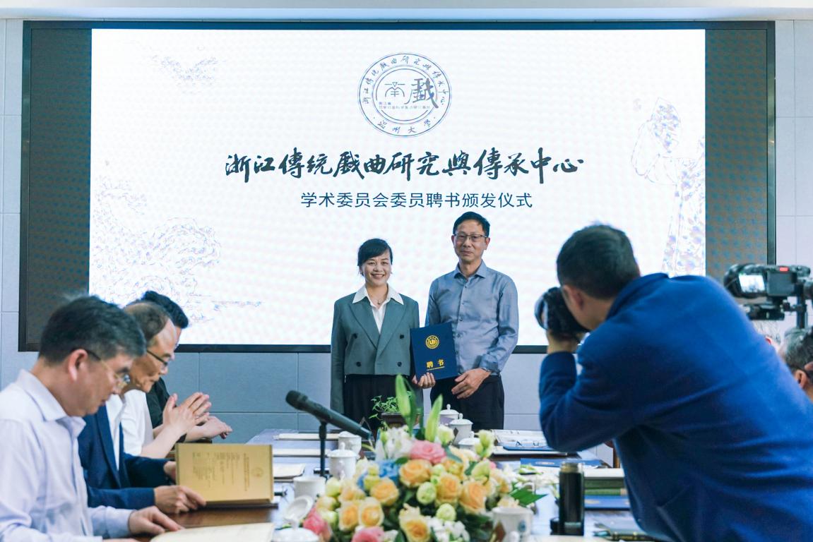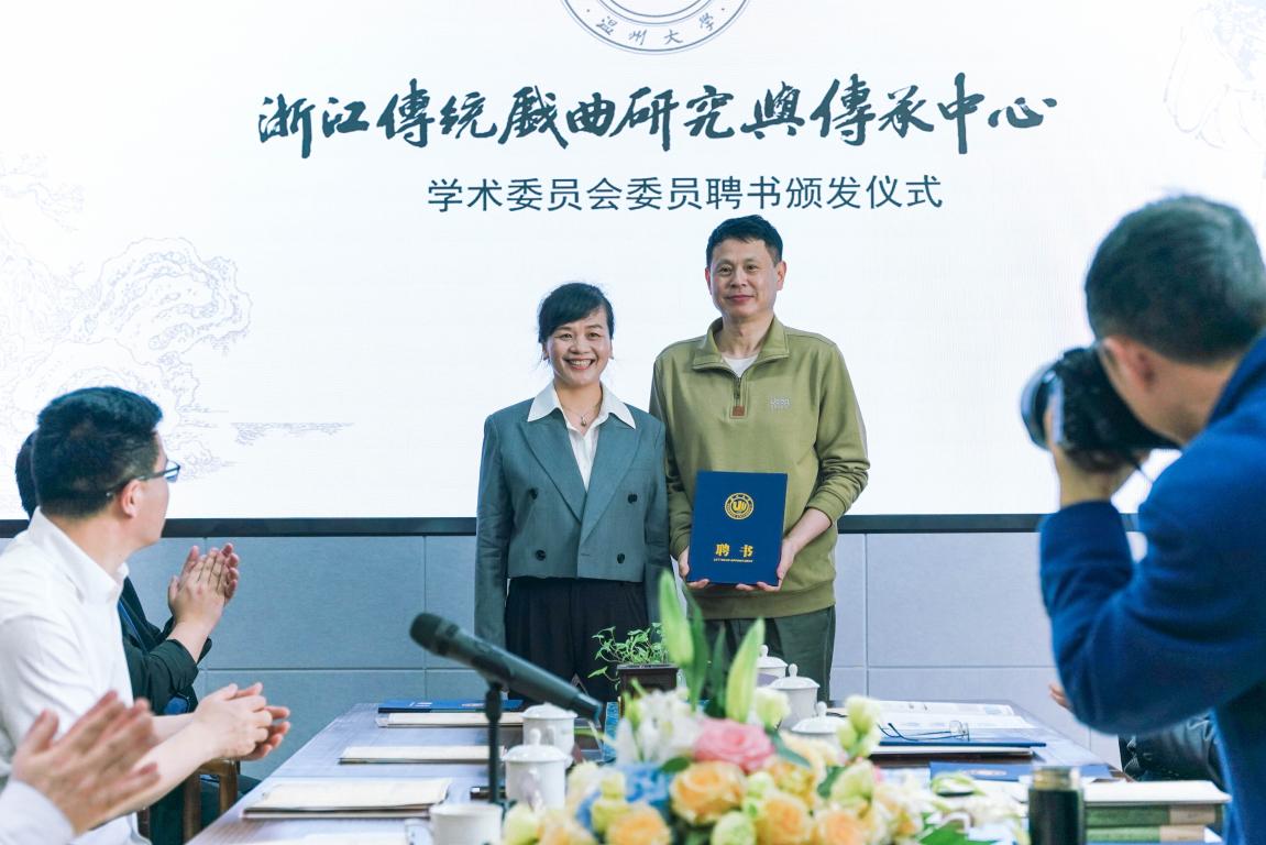 随后的中心学术委员会委员聘书颁发仪式上,温州大学副校长徐和昆教授、戏曲中心主任俞为民教授、温州市社科联副主席叶雪影为浙江传统戏曲研究与传承中心学术委员会委员叶长海、杜桂萍、廖可斌、黄仕忠、王馗、朱恒夫、孙书磊、王宁、刘水云教授等颁发了中心学术委员会委员聘书。