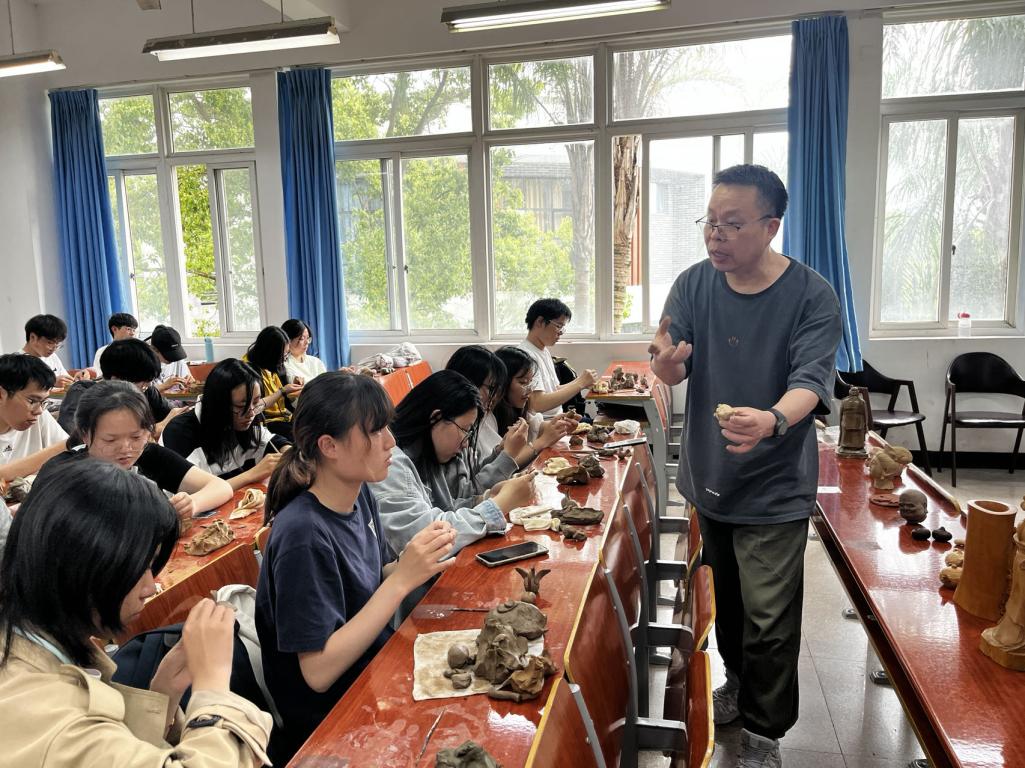 2023年春季学期,“手造温州”课程延续“非遗+劳动教育”的上课模式,邀请温州非遗传承人走进校园为大学生们上劳动课。通过对剪纸、米塑、发绣、泥塑、吹糖人等温州传统非遗技艺的感知与探索,带领大学生们一同触摸传统匠心匠艺,一起感受历经时间沉淀的非遗之美,一块体验劳动创造的乐趣。