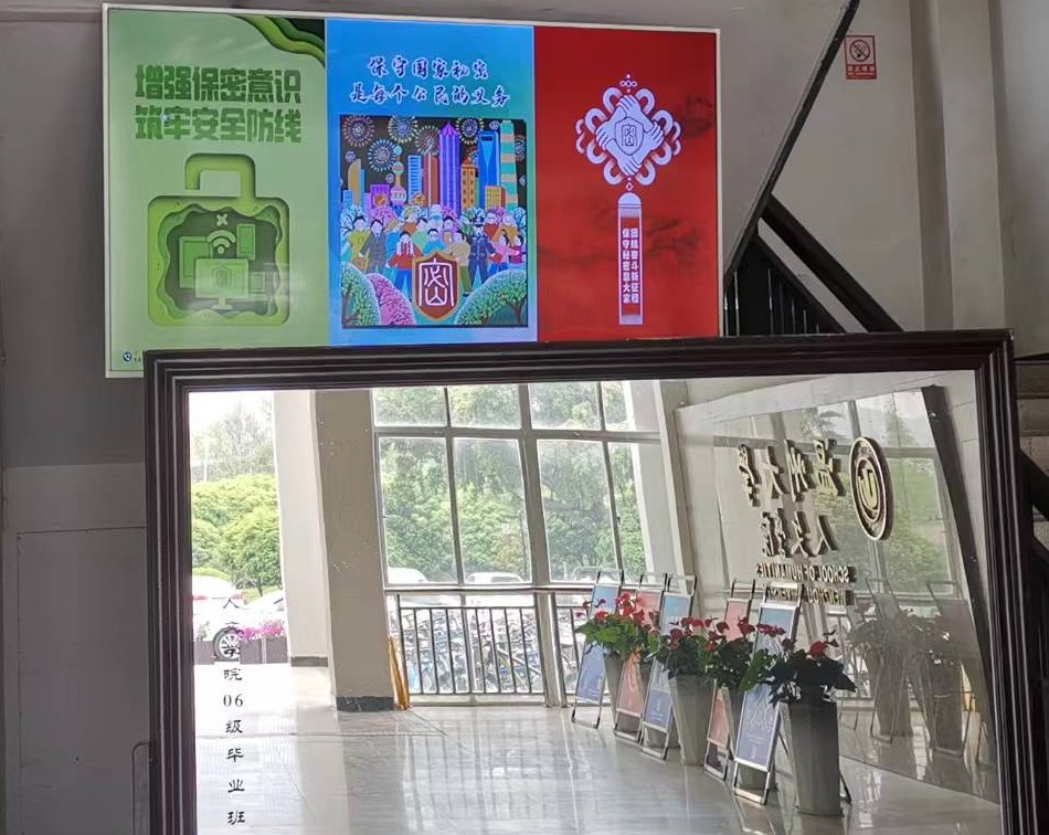 学院积极开展国家保密教育月宣传活动,精心组织,强化宣传,通过线下展览宣传、LED屏不间断滚动播放、安全保密教育手册、网上课堂、主题班会等“线上+线下”联动方式进一步提高师生国家安全保密意识。同时,为进一步加强日常工作保密自查,要求行政人员严格落实对计算机的保密管理,加强对机要文件的管理和各类文件的印制、保管、清理、归档、销毁工作的保密安全措施。