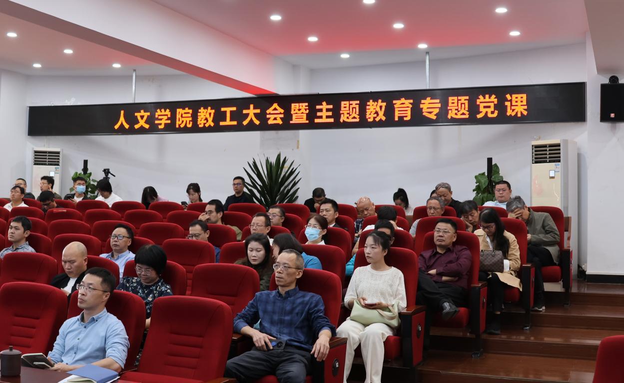根据学习贯彻习近平新时代中国特色社会主义思想主题教育的工作要求,11月1日下午,球探体育 在人文楼203会议室举行教工大会暨主题教育专题党课,邀请潘玉驹副校长作《牢牢把握意识形态主导权》专题党课。学院领导班子和全体教职工参加会议,院党委书记江秀景同志主持。