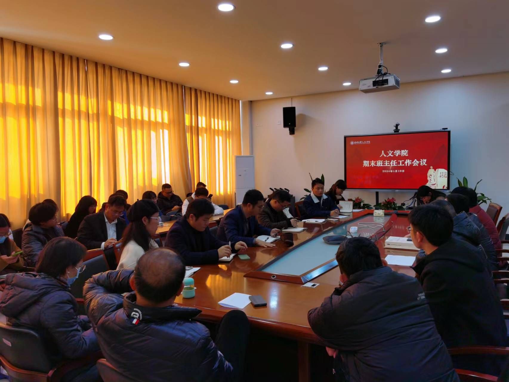 2024年1月10日下午,球探体育 在人文楼213会议室召开了期末班主任工作会议。参加本次会议的有院党委书记江秀景、院党委副书记魏一,学工办副主任申业磊、辅导员李丹萍、张丹妮、刘炳林、刘恭宇、王佳慧以及各班班主任。会议由院党委副书记魏一主持。