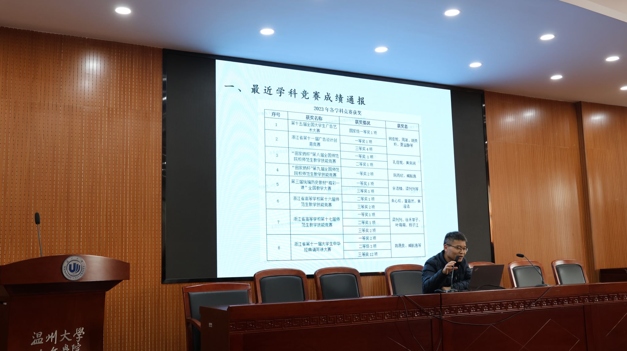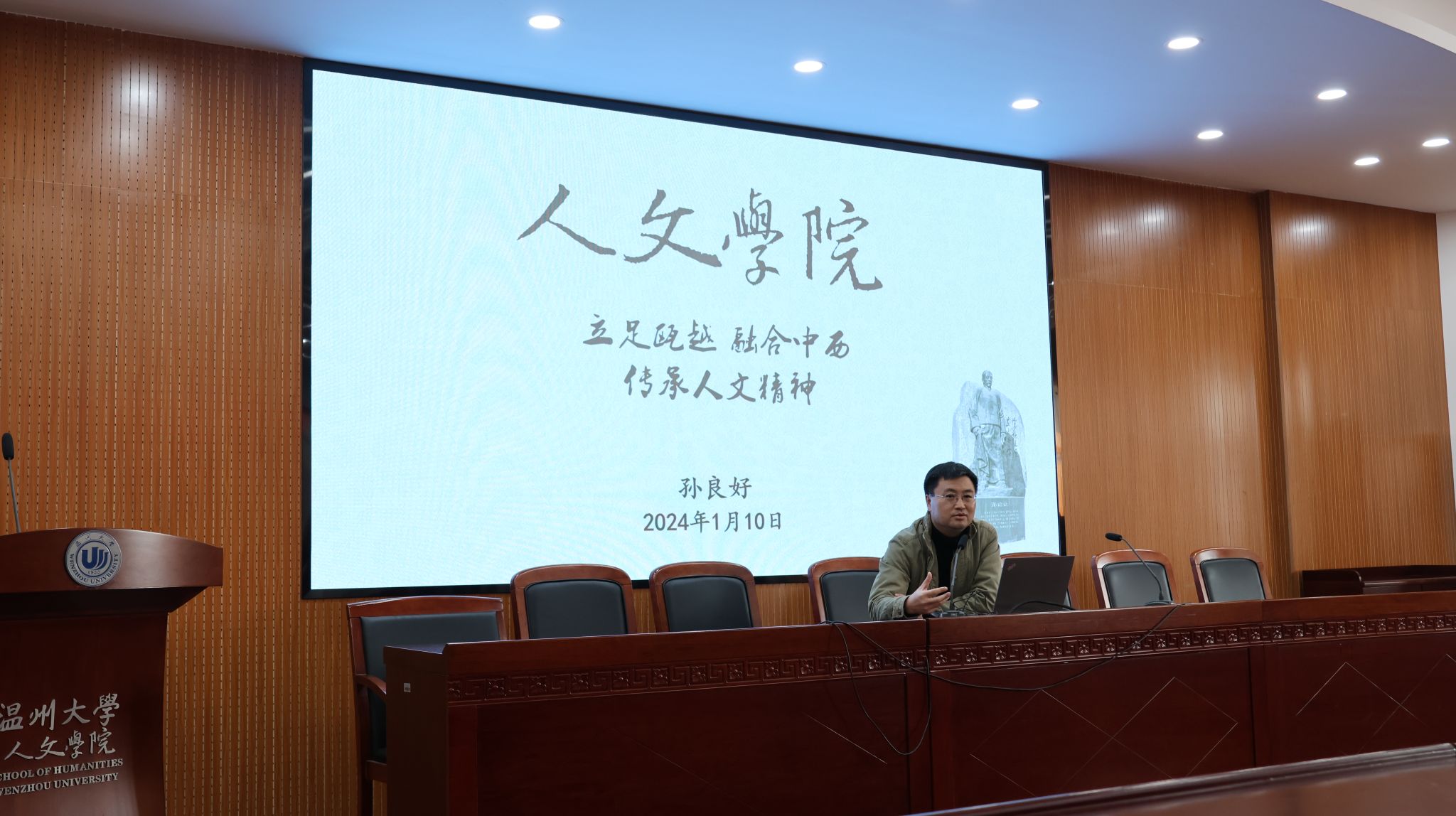 工作成效方面,孙院长围绕“师资引育”、“专业建设”、“学科科研”、“人才培养”、“社会服务”五方面详细展开介绍。师资方面继续强调人才引育并重,形成梯队合理、各有所长的人才矩阵;创建“人才之家”,优化人才服务。本年度,蒋胜男研究员获国务院特殊津贴、民革全国参政议政工作先进个人和浙江省“三八红旗手”荣誉称号,方韶毅获文化温州建设突出个人,并担任杭州亚运会火炬手。2人入选“瓯江青年社科学者”、6人获评瓯江特聘教授、2人获评“新湖青年学者”,6人获得专业技术职务晋升。专业建设方面,重视本科优势特色、完善课程建设、重视青年教师培养和校地合作,本年度历史学通过教育部师范类二级专业认证,新增1门国家一流线上课程,2门获推申报国家一流课程。学科科研方面,奖项论著四轮驱动,本年度获各级各类纵向项目20余项,省哲学社会科学优秀成果奖2项,已录入科研系统学术论文42篇,新增人文社科著作12部;学院积极承办各类学术讲座和高端会议近80场,扩大学术影响力,邀请学科顶尖专家来校参会,为申博把脉,持续推进学院申博工作。人才培养方面,校友影响力与日俱增,学生学科竞赛硕果累累,荣获大广赛、师范技能竞赛等国家级、省级一等奖十余项。社会服务方面,9支学科团队、近百名师生开展“双百双千”行动,助力地方文化建设;蒋胜男研究员出访东南亚开展文学交流,作品《芈月传》获“网络文学国际传播项目”,助力中国文化国际传播;同时,不断拓展继续教育, 球探体育 培训中心与两家知名教育机构达成合作,省中小学师资培训项目和委托项目成绩喜人。