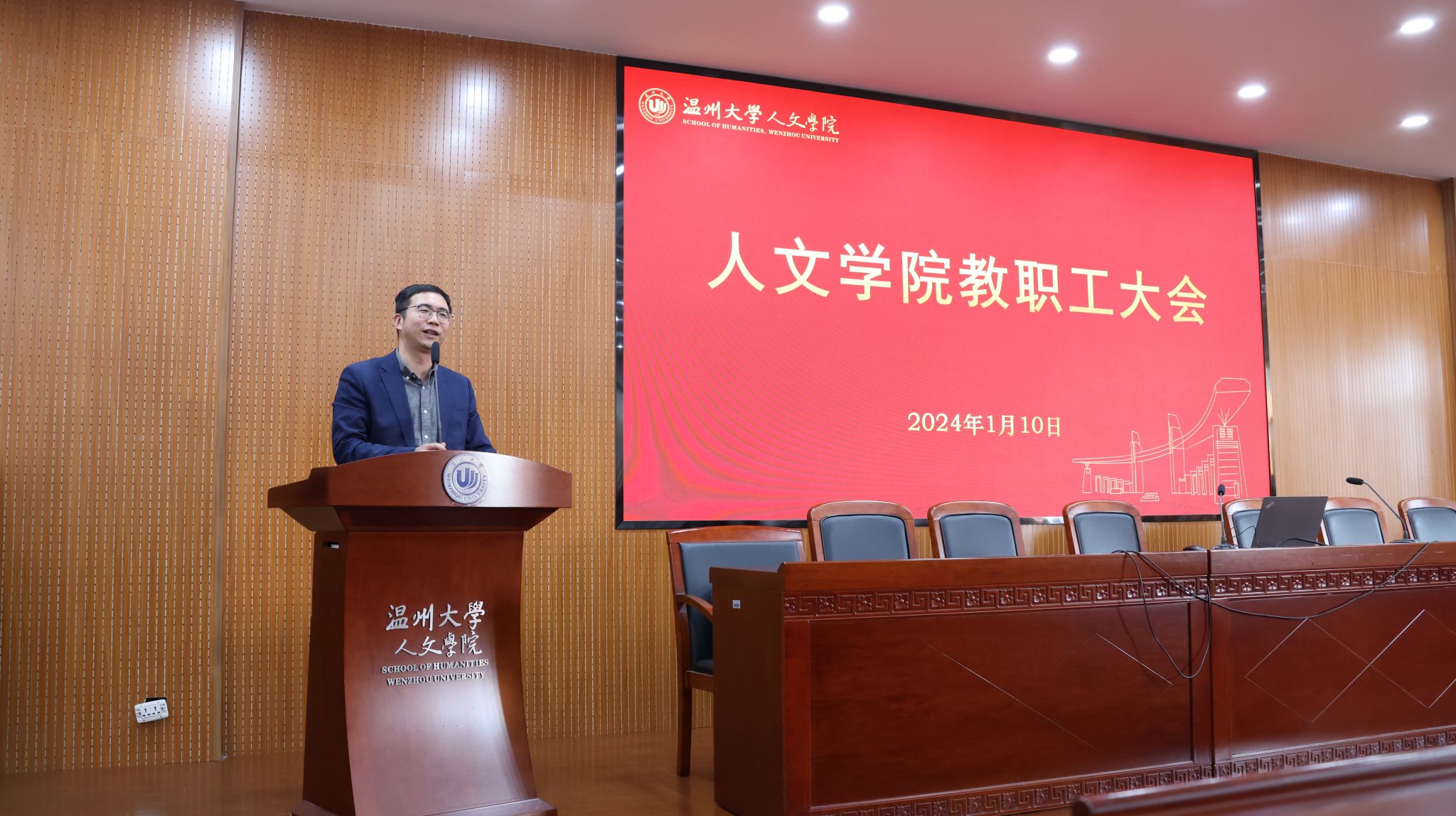 1月10日下午,球探体育 学期末教工大会在人文楼203报告厅召开。学院领导班子和全体教职工悉数参加会议。会议由院党委书记江秀景主持。