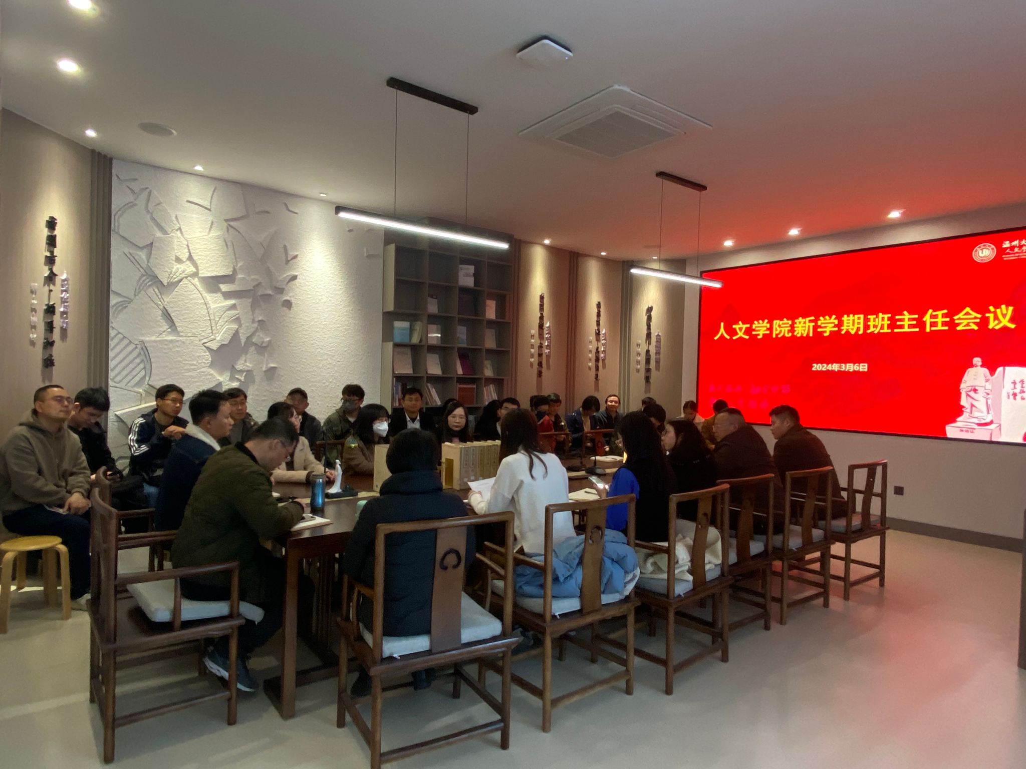 2024年3月6日下午,球探体育 在国家语言文字基地召开了学期初班主任工作会议。参加本次会议的有院党委副书记魏一,学工办副主任申业磊、辅导员李丹萍、张丹妮、刘炳林、谭黄、刘恭宇、王佳慧以及各班班主任老师。会议由学工办副主任申业磊主持。