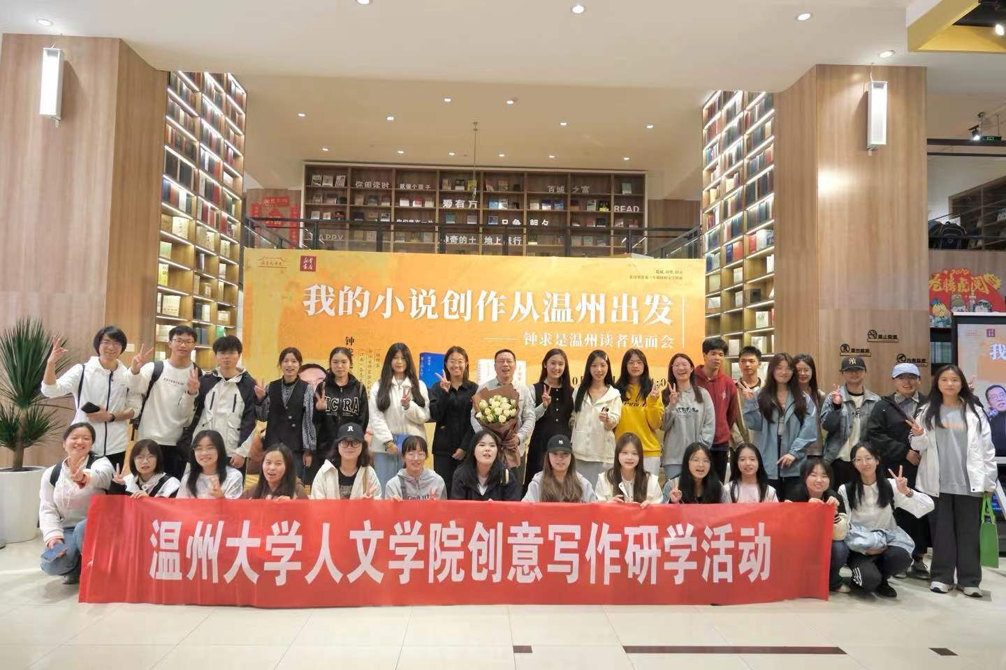 2023年3月30日,23级汉语言文学(创意中文实验班)学生在刘卫东老师的带领下赴温州书城开展研学活动,参加了温州书城20周年店庆首场名家分享活动。本次活动有幸请到国内著名温籍作家、《江南》杂志主编、作品获鲁迅文学奖、《小说月报》百花奖、十月文学奖、浙江省作家协会副主席钟求是先生,他为大家作主题为“我的小说创作从温州出发”的讲座。本次活动在中共温州市鹿城区委宣传部的指导下,由浙江温州市新华书店有限公司主办,温州大学球探体育 协办。
