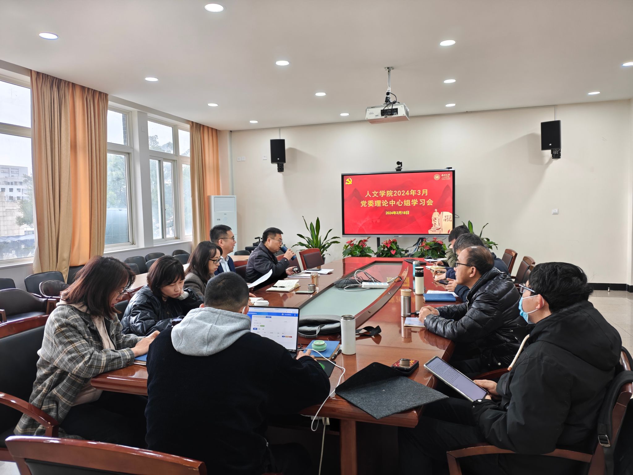 3月18日上午,学院党委理论学习中心组召开2024年第2次学习会。学院领导,党委委员,各系室(中心)党政负责人参加会议,院党委书记江秀景主持会议。