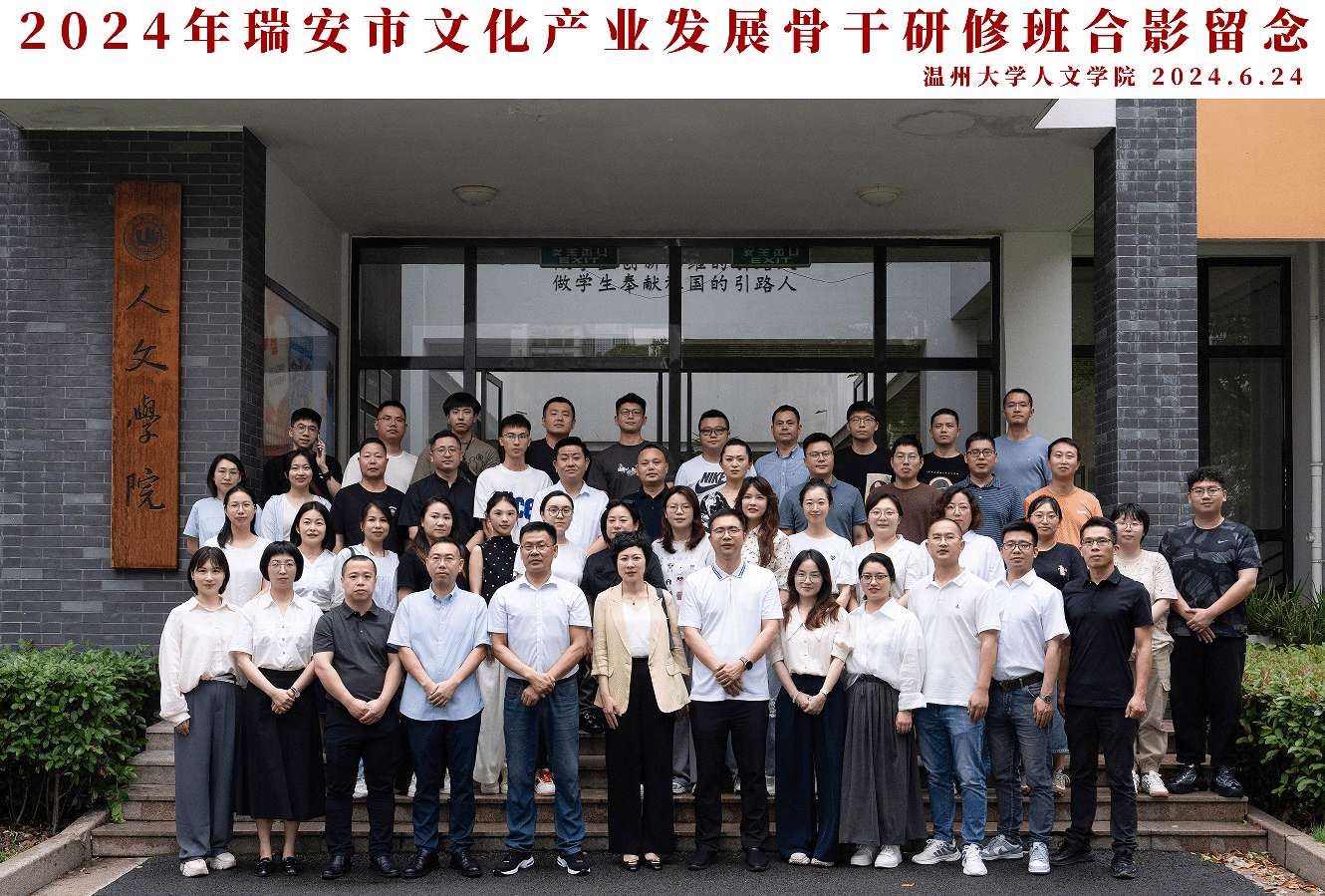 由温州大学球探体育 培训中心承办、为期四天的2024年瑞安市文化产业骨干研修班于6月27日圆满结束。球探体育 和瑞安市委宣传部都对本次活动高度重视。球探体育 党委书记江秀景、瑞安市委宣传部副部长金铠出席了开班仪式。球探体育 培训中心主任刘建国教授、瑞安市委宣传部文化科郑美巧科长全程参与。