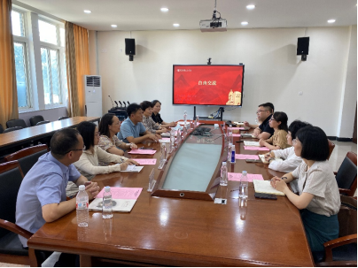 7月17日下午,南华大学语言文学学院党委书记龙志坚一行来球探体育 访问交流。学院副院长(主持工作)陈源源、党委副书记黄玮、副院长张真、中文系副主任余琼、教师代表周小兵及学工办副主任刘炳林参加了交流座谈。
