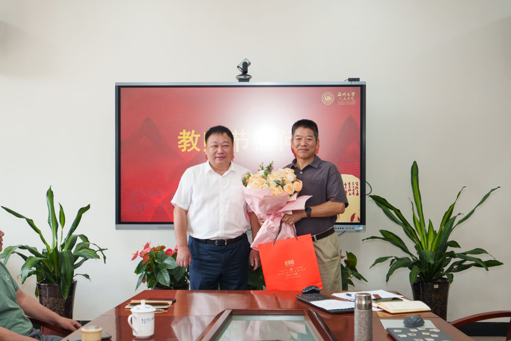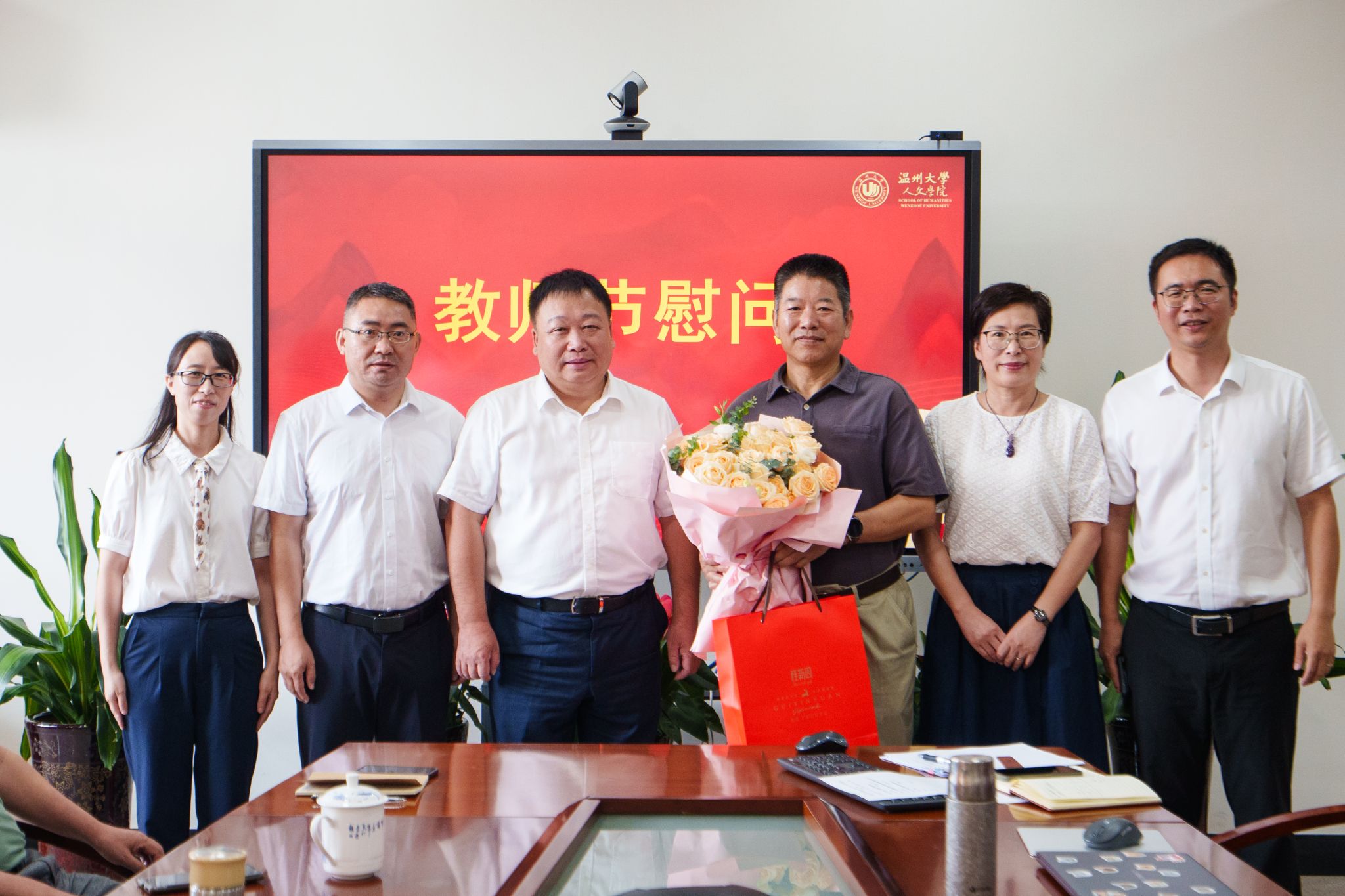 9月9日,在教师节来临之际,温州大学校长赵敏教授莅临球探体育 ,亲切慰问了球探体育 特聘教授王汉民老师和部分教师代表,并致以节日问候。校党校办主任高红星、人事处处长郑彩莲、学院领导班子成员陪同。