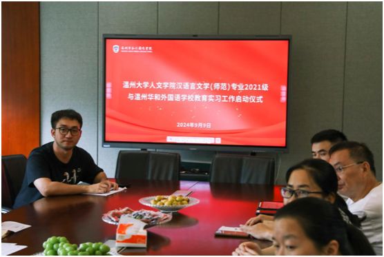 味觉三夏尽,时序已新秋。9月9日下午,温州华和外国语学校与温州大学球探体育 汉语言文学(师范)专业2021级学生教育实习工作启动仪式在温州华和外国语学校行政楼二楼会议室举行。见面会由华和外国语学校学生处副主任、语文教研组组长陈奇老师主持,参与本次见面会的人员有温州大学球探体育 的陈源源副院长、陈柳教授、温州华和外国语学校中学部叶德权副校长、指导老师们和全体实习生。