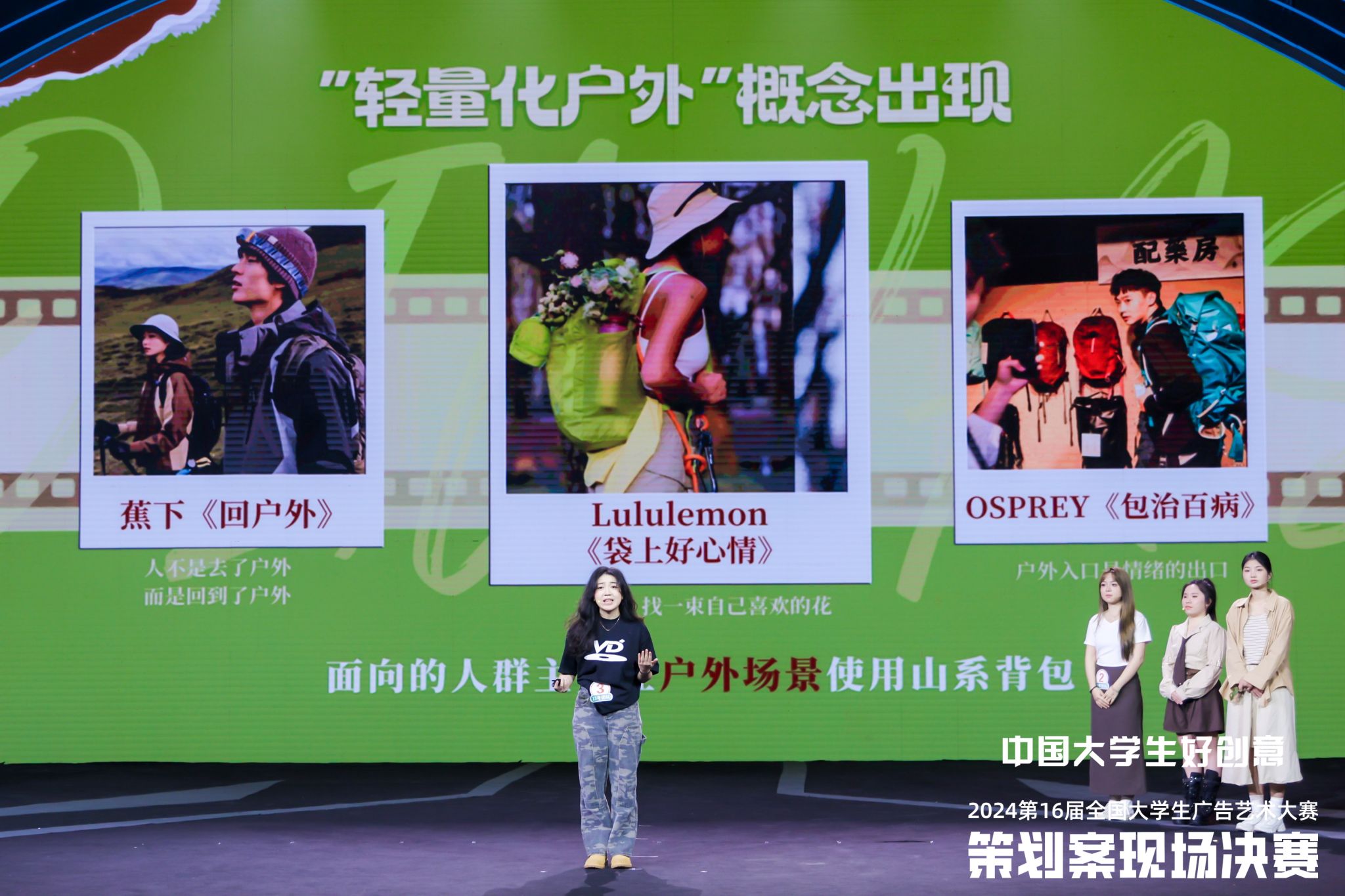 2024年9月7-8日,第16届全国大学生广告艺术大赛策划案现场提案决赛在北京东亿国际传媒产业园圆满落下帷幕,由温州大学球探体育 广告系杨永晨、颜志香两位老师指导的爱华仕“山系”双肩包命题团队——广告专业2021级许佳丽、杨欣楠、刘欣和2022级罗冰晶四位同学,凭借独具创意的策划案《不在山里也要野》入围全国总决赛,经过现场提案的精彩表现和激烈角逐,继第14届、第15届分别以第2名的总成绩获得一等奖之后,温大广告学子在第16届全国大学生广告艺术大赛策划案现场提案决赛上再度斩获一等奖。
