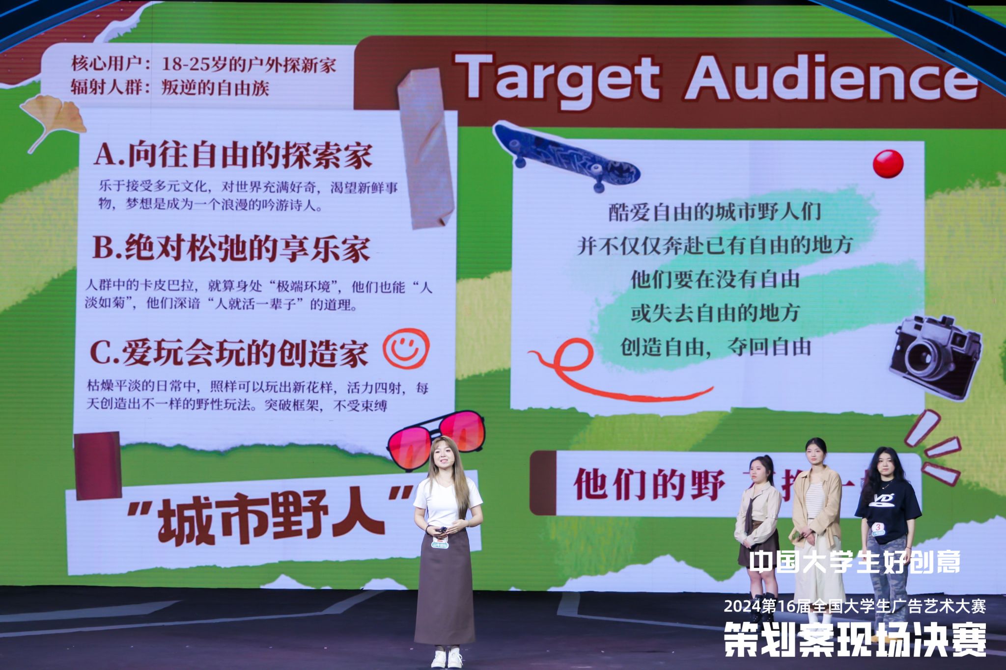 第16届全国大学生广告艺术大赛优秀作品众多,组委会从入围全国的20545件策划案中,经过层层选拔,评审出19件获得全国二等奖及以上荣誉的策划案作品,再通过现场陈述、提案、答辩,按照评委打出的总分进行排名,本届策划案现场提案决赛温州大学展演的《不在山里也要野》得到了学界、业界评委们的综合好评与广泛认可。划案现场提案决赛不仅是对高校广告创意人才的一次大考,也成为大学生们展示创意实力和综合才华的舞台。