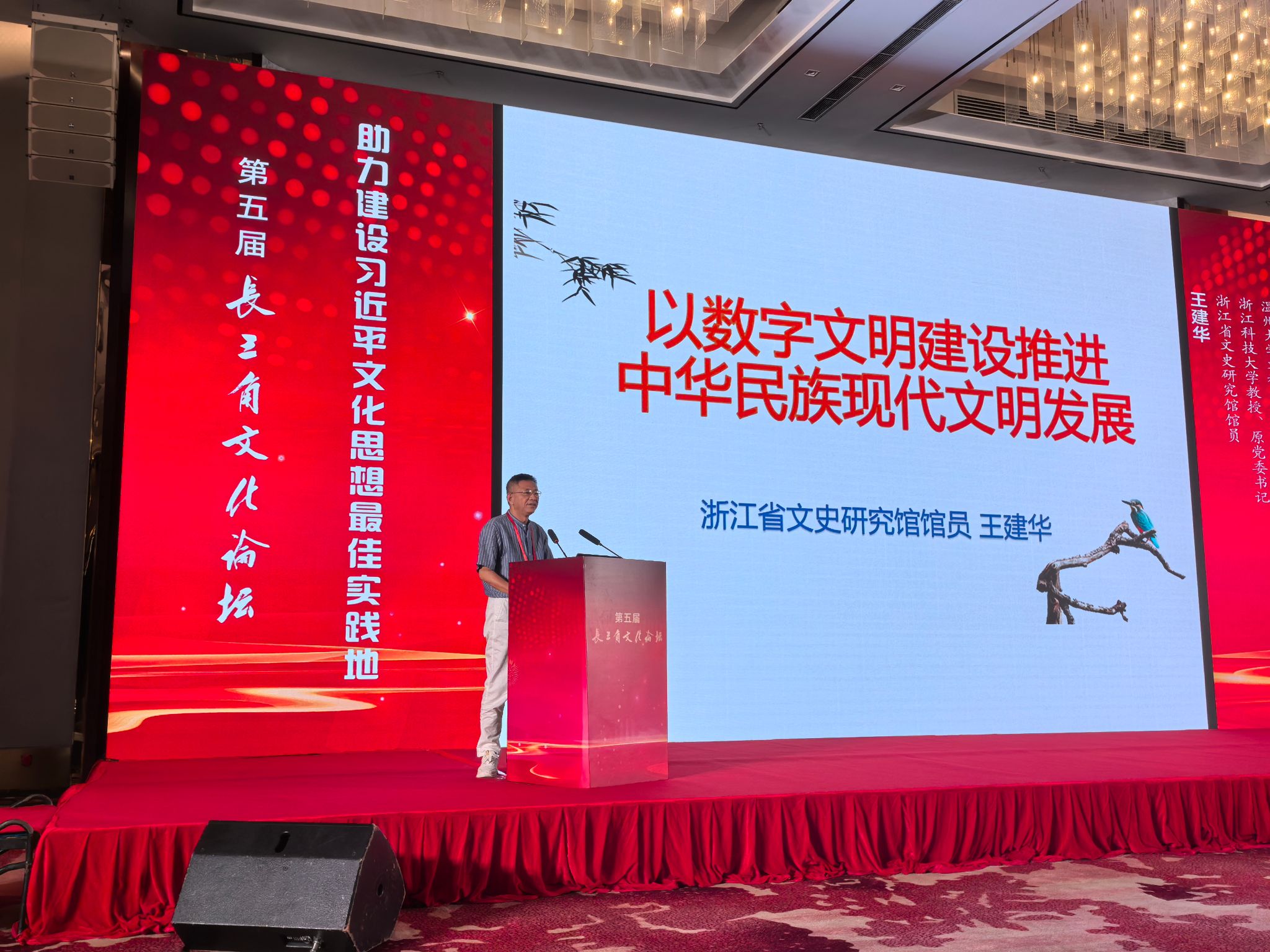 浙江省文史研究馆馆员、我校球探体育 资深教授王建华老师应邀参加本次论坛,并在大会上作了《以数字文明建设推进中华民族现代文明发展》的主题演讲。王建华教授指出,数字文明是中华民族现代文明的重要组成部分,是具有时代特色的中华文明现代的新形态。数字文明建设将有力推进中华民族现代文明的发展。长期以来,浙江在数字化、数字文明建设方面成绩斐然,为探索中华民族现代文明做出了积极贡献。我们应立足于浙江实际,着眼数字文明建设的实际推进,展开不同维度的三个方面探索:首先是建设优秀的数字文明环境;其次是将数字新质生产力与精神文明融合;最后是着力提升网络主体的文明修养。王建华教授的报告引起了在座专家学者的极大兴趣和一致好评。