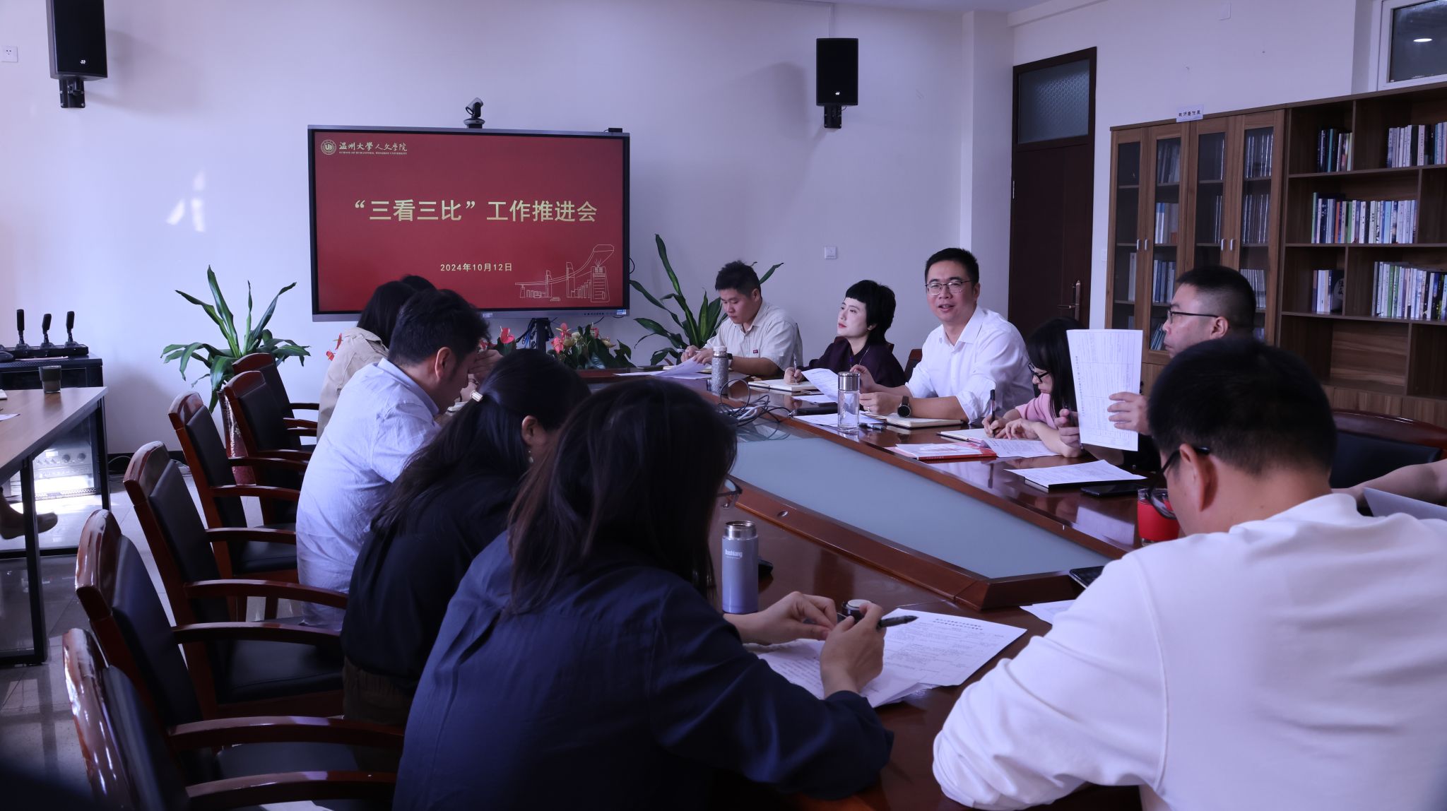 2024年10月12日,球探体育 领导班子和全体行政人员于213会议室召开了“三看三比”工作推进会暨争创“5A平安校园”工作部署会。会议旨在进一步推动学院各项工作高效开展,并部署争创“5A平安校园”的工作任务。